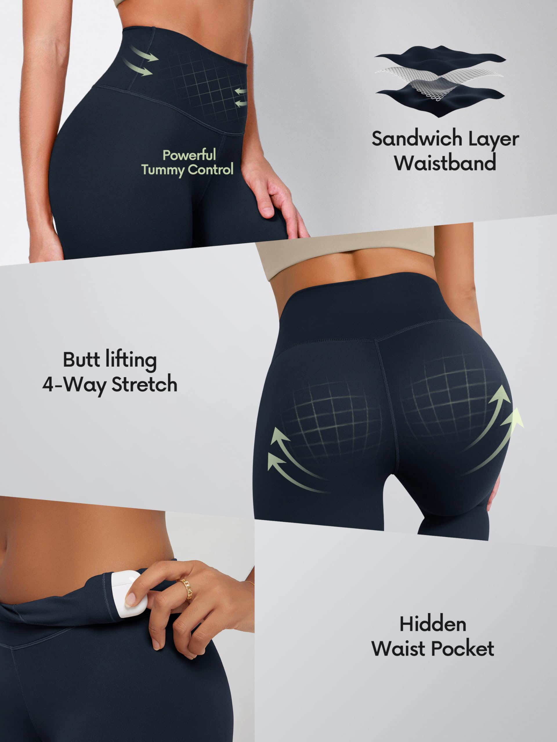 Seamless sandwich-layer waistband provides tummy control and a smooth, stay-put fit, keeping you secure and comfortable all day.