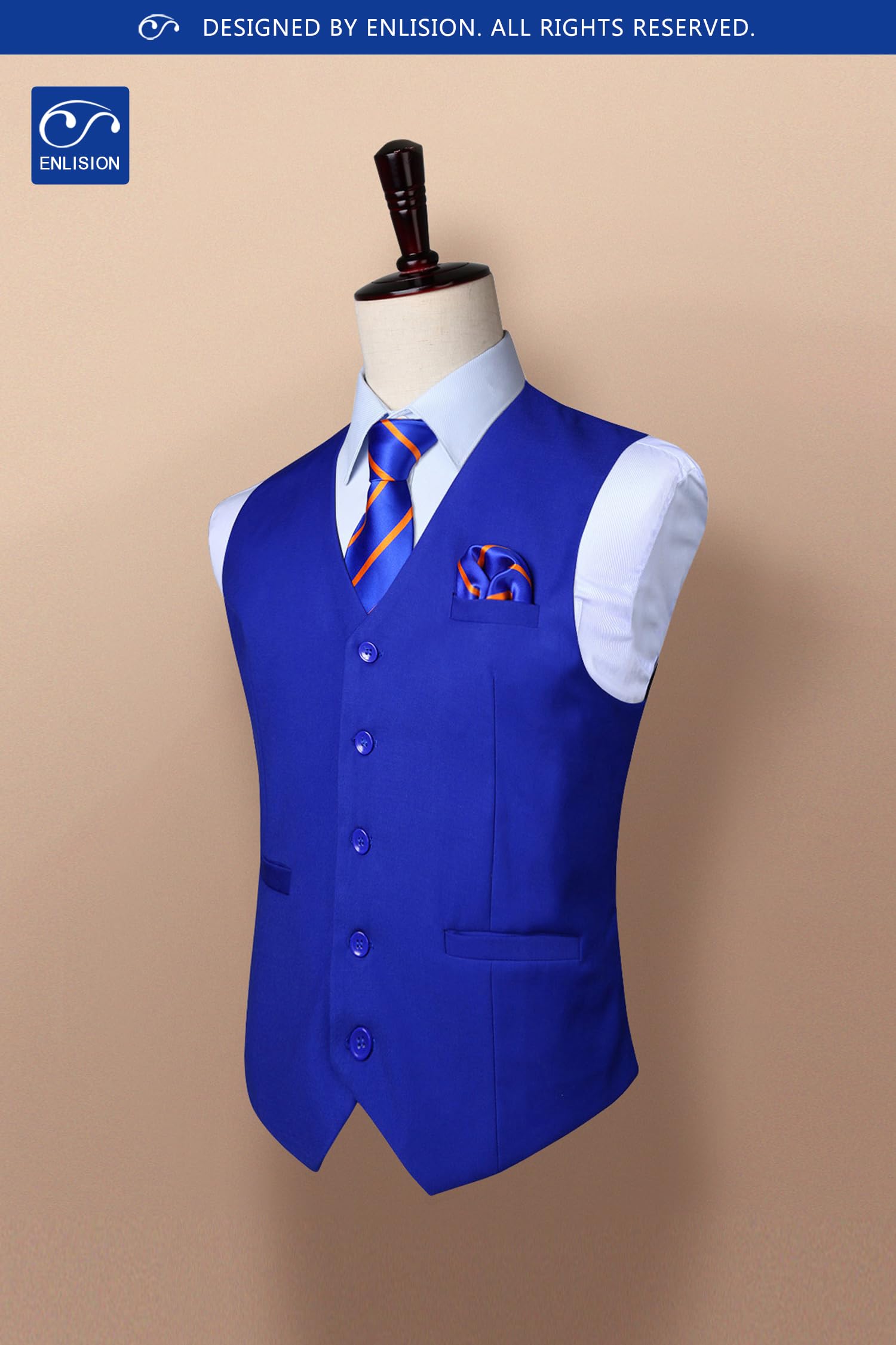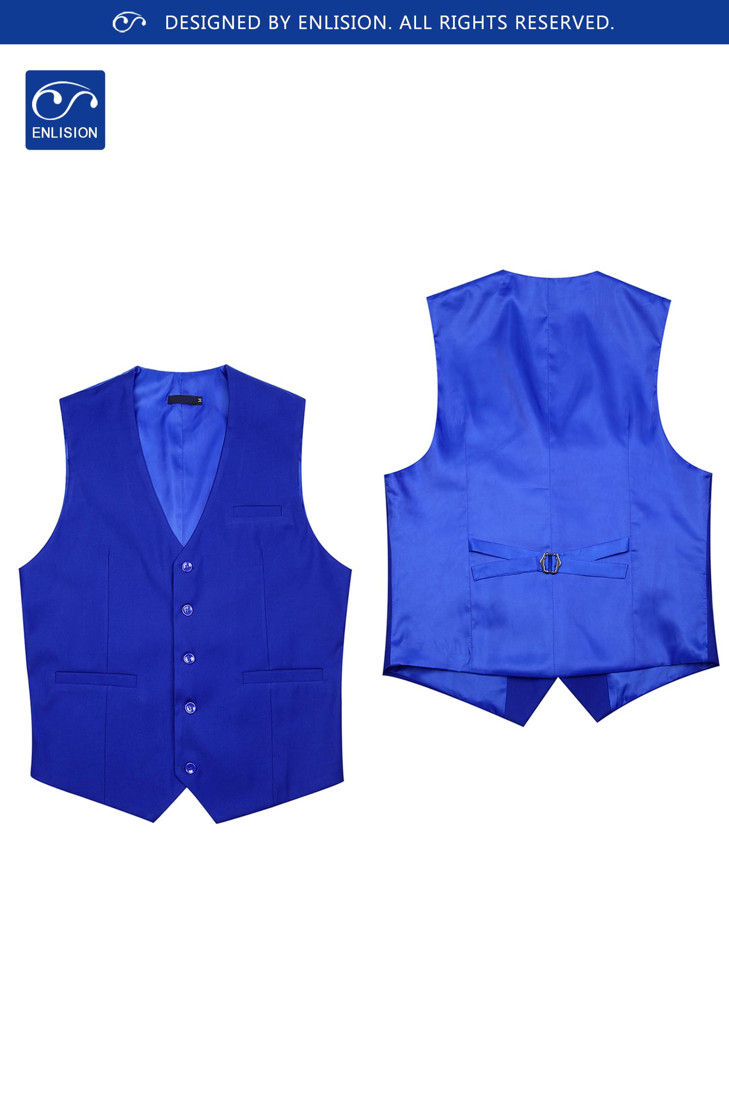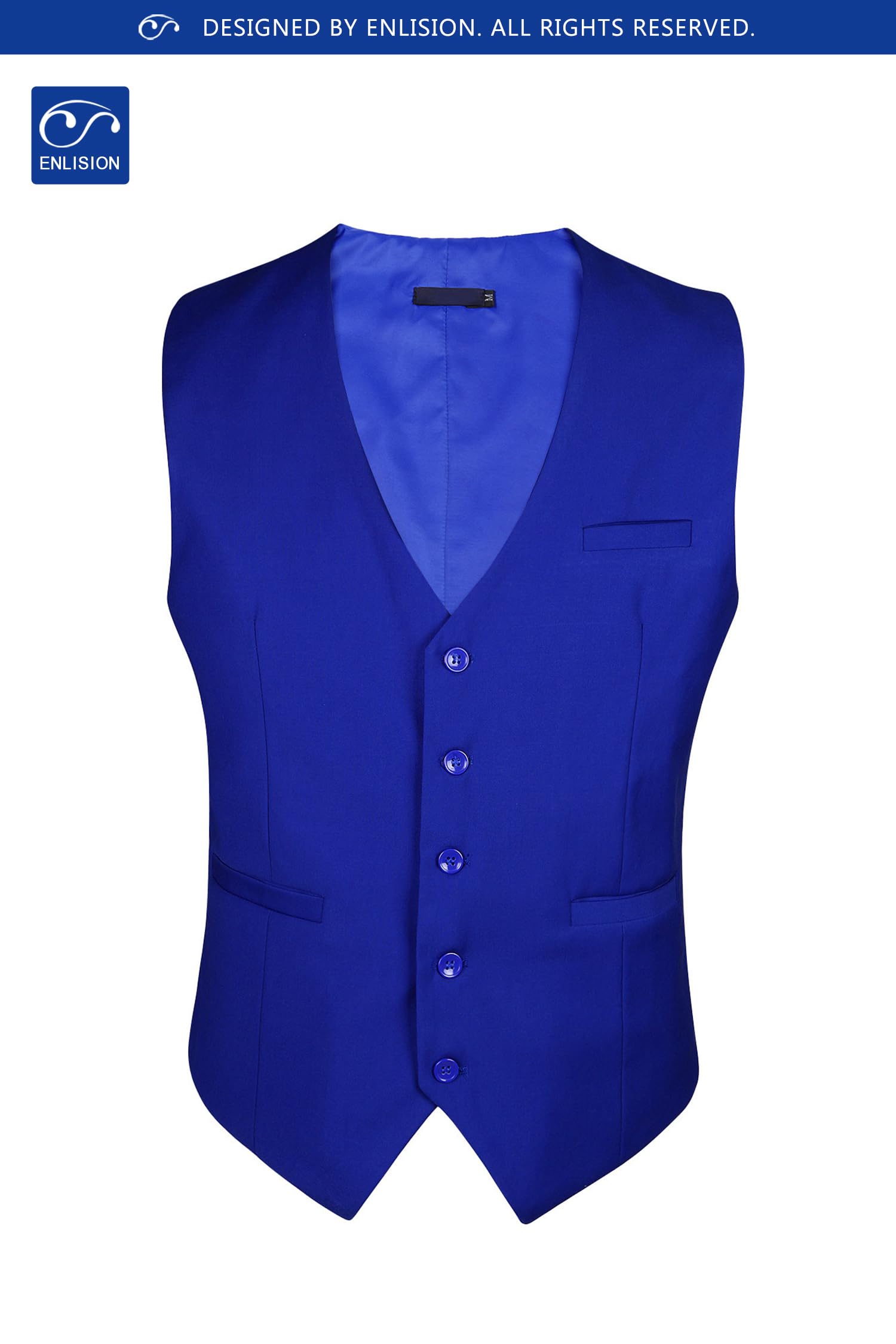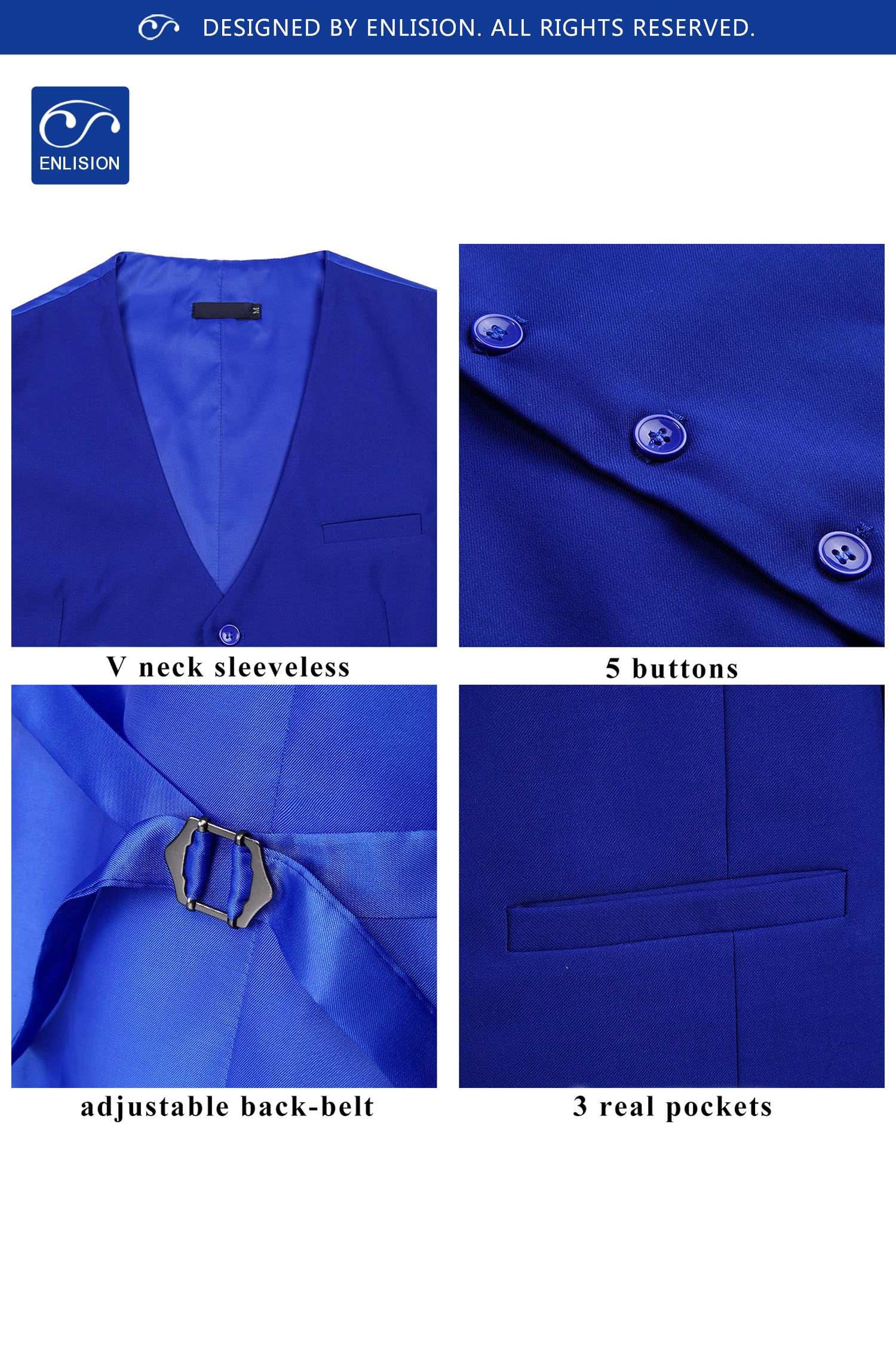 Vest Design: Business vest is designed with classic solid color, V-neck, 5-buttons closure and 1 real pocket on the front, 2 real side pockets; These formal vest sizes are not the same as US size; Please check the size chart carefully on the product picture instead of the Amazon size chart
