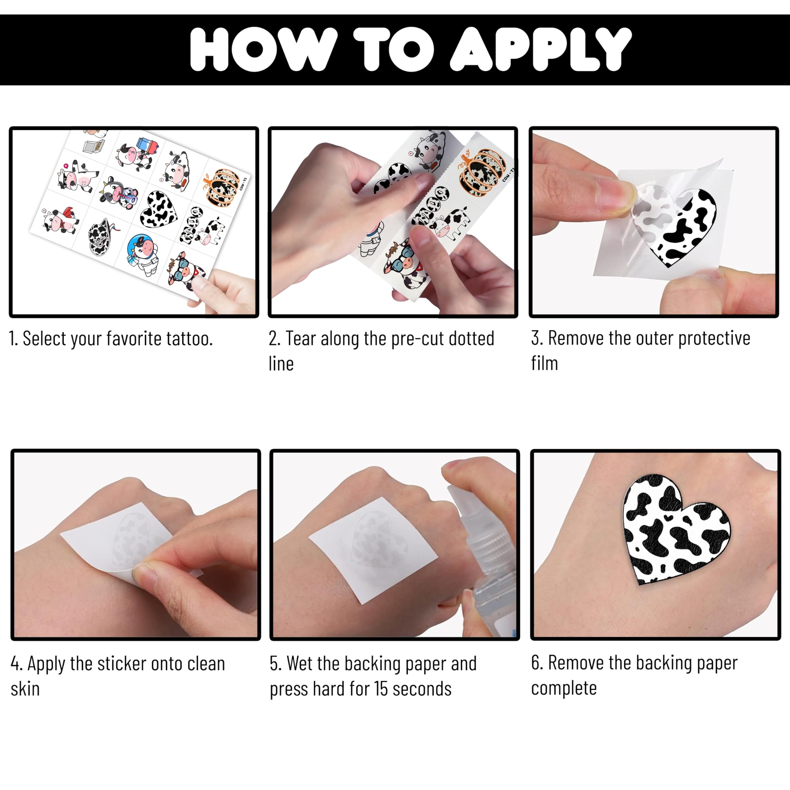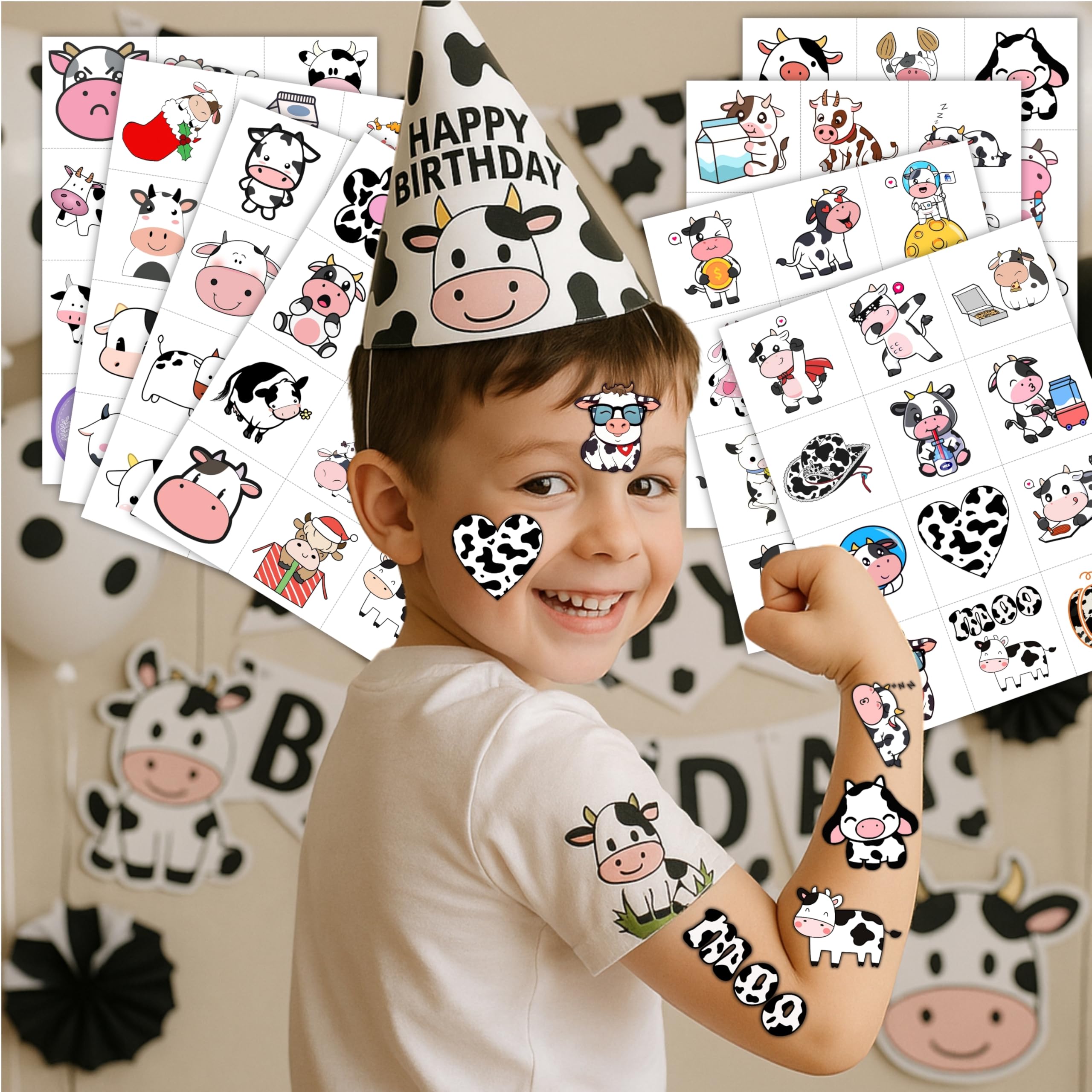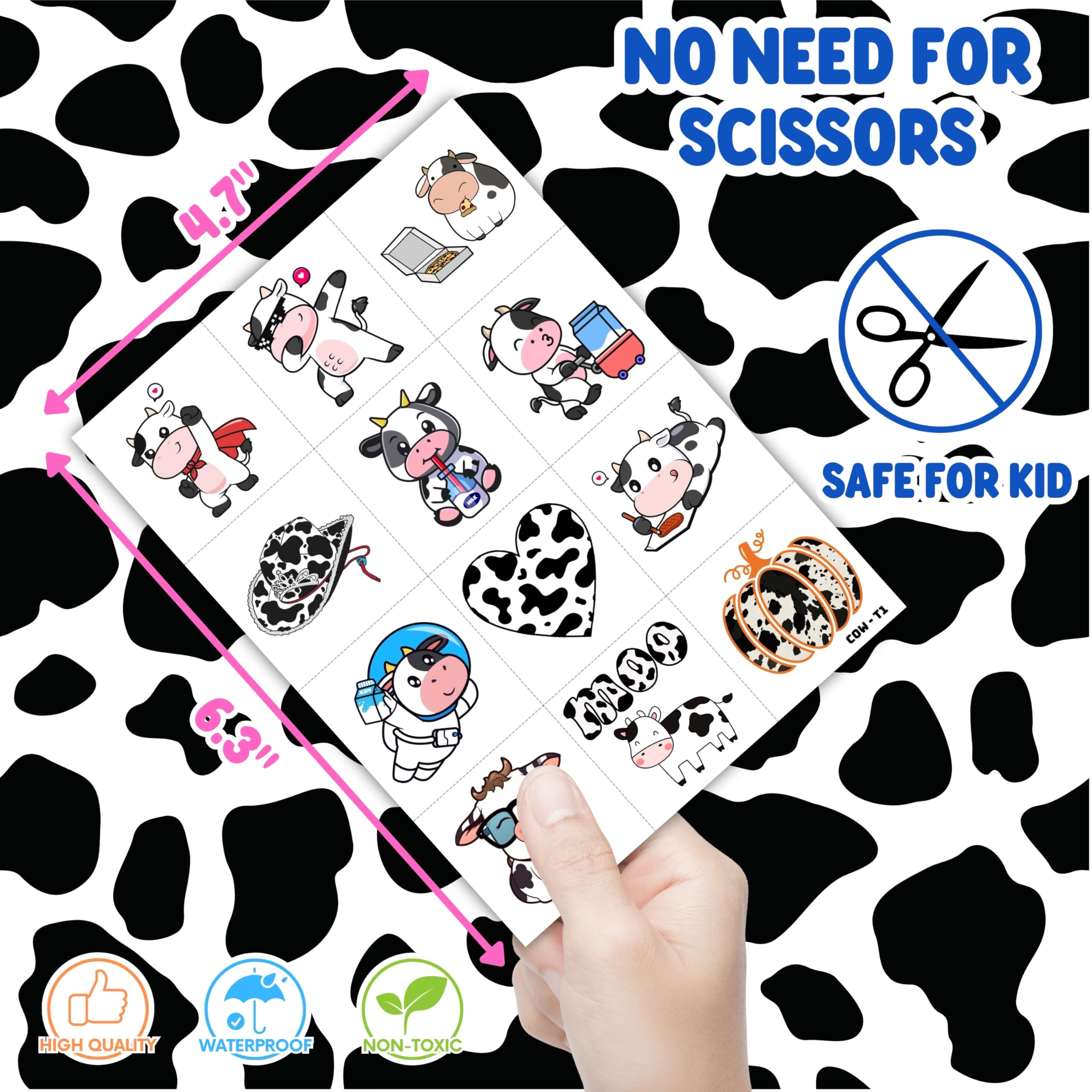 🐄【PERFECT PRE-CUT TATTOOS FOR THEMED COW DECORATIONS】: Cow pre-cut temporary tattoo stickers include 8 sheets in total, featuring 96 super cute and unique designs. Perfect for party favors and holiday-themed small gifts. Each sheet measures 16 x 12 cm (6.3 x 4.7 inches)—a perfect size for kids! Thanks to the pre-cut perforated lines, you can easily tear them apart by hand—no scissors needed!