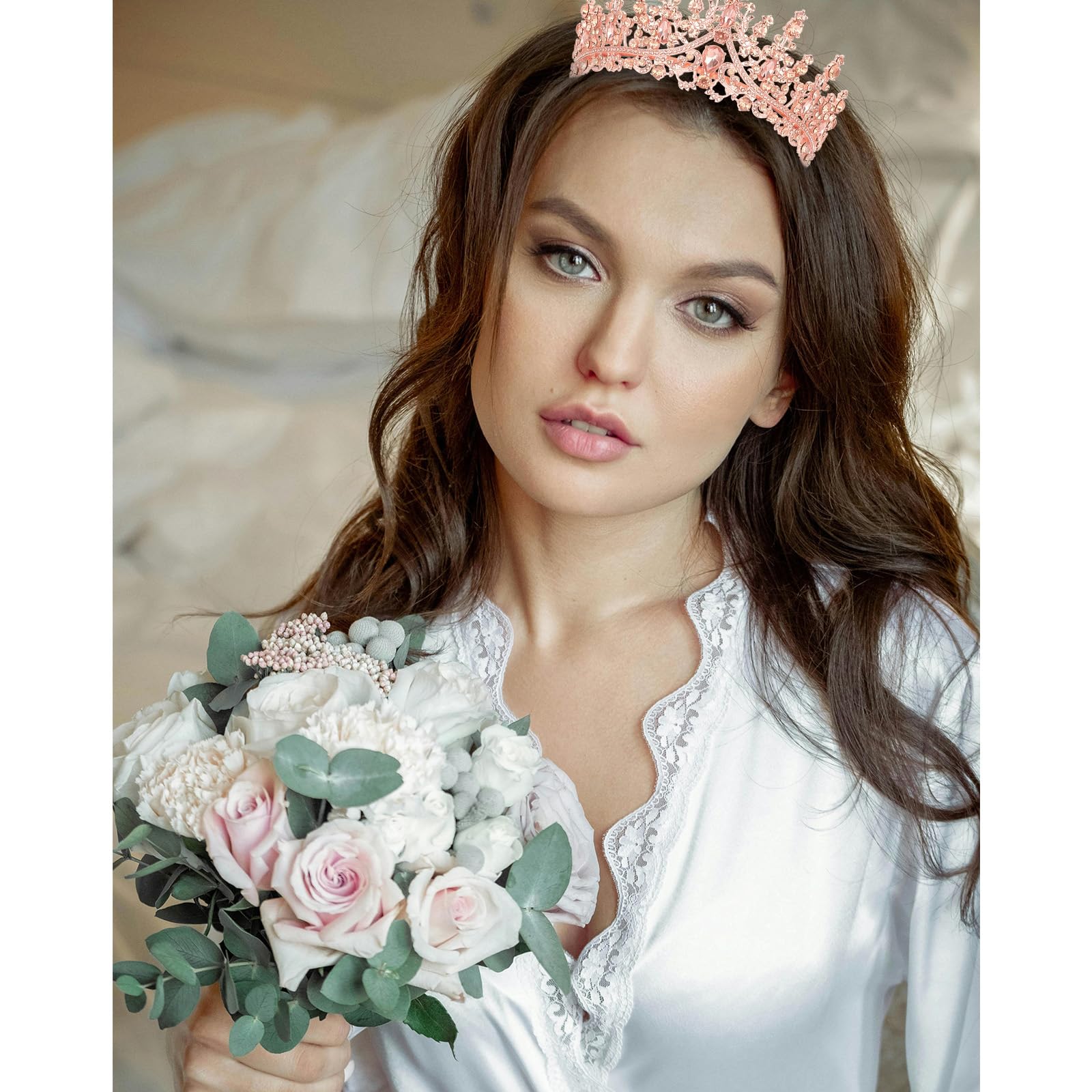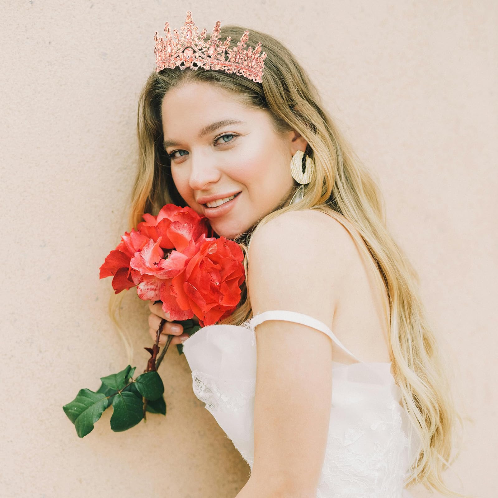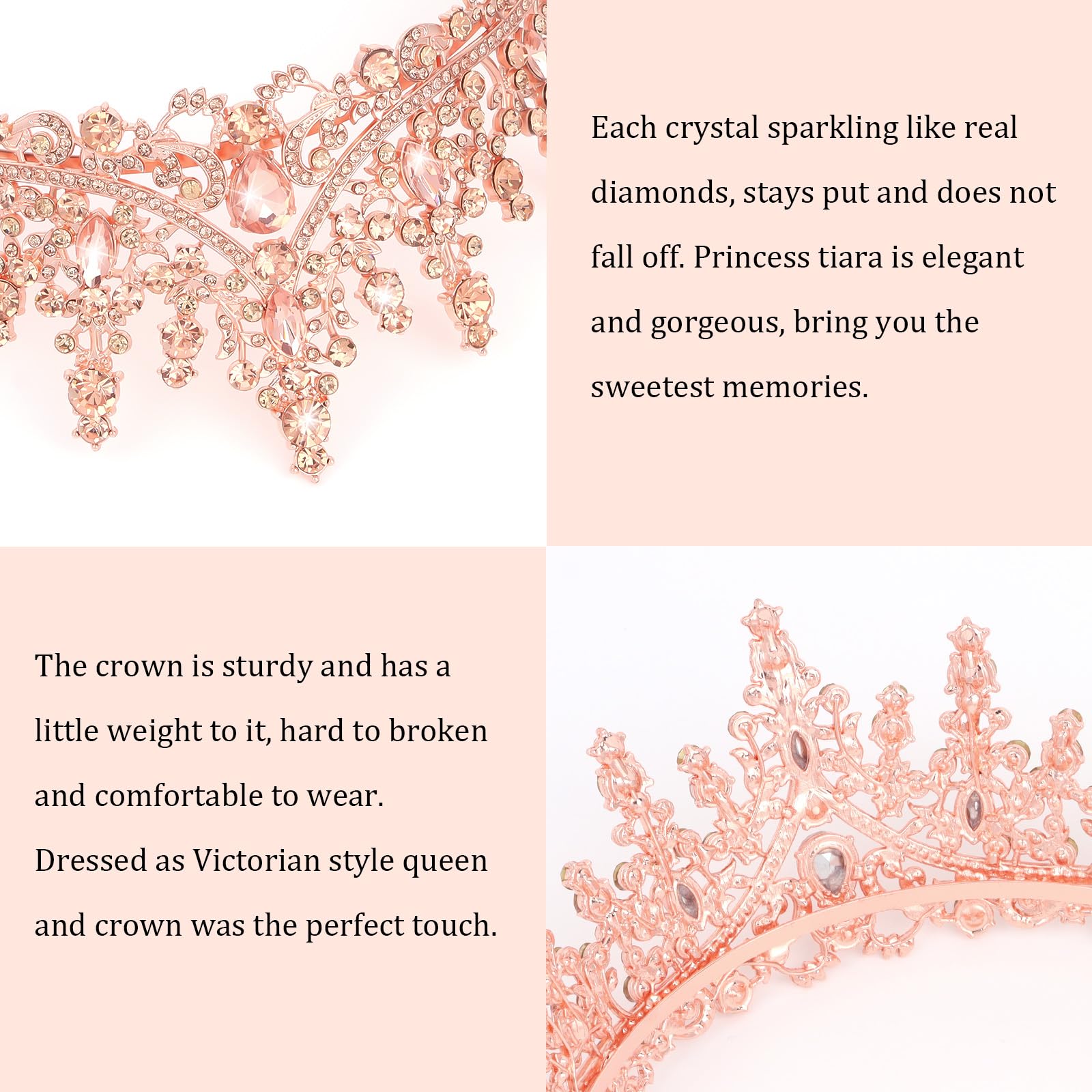 【High-Quality Material】: The tiara monolithic frame is made of durable alloy. It is then embellished with shiny crystals,which exude a gentle glow.It has a good texture and can be used to take perfect photos for your social software