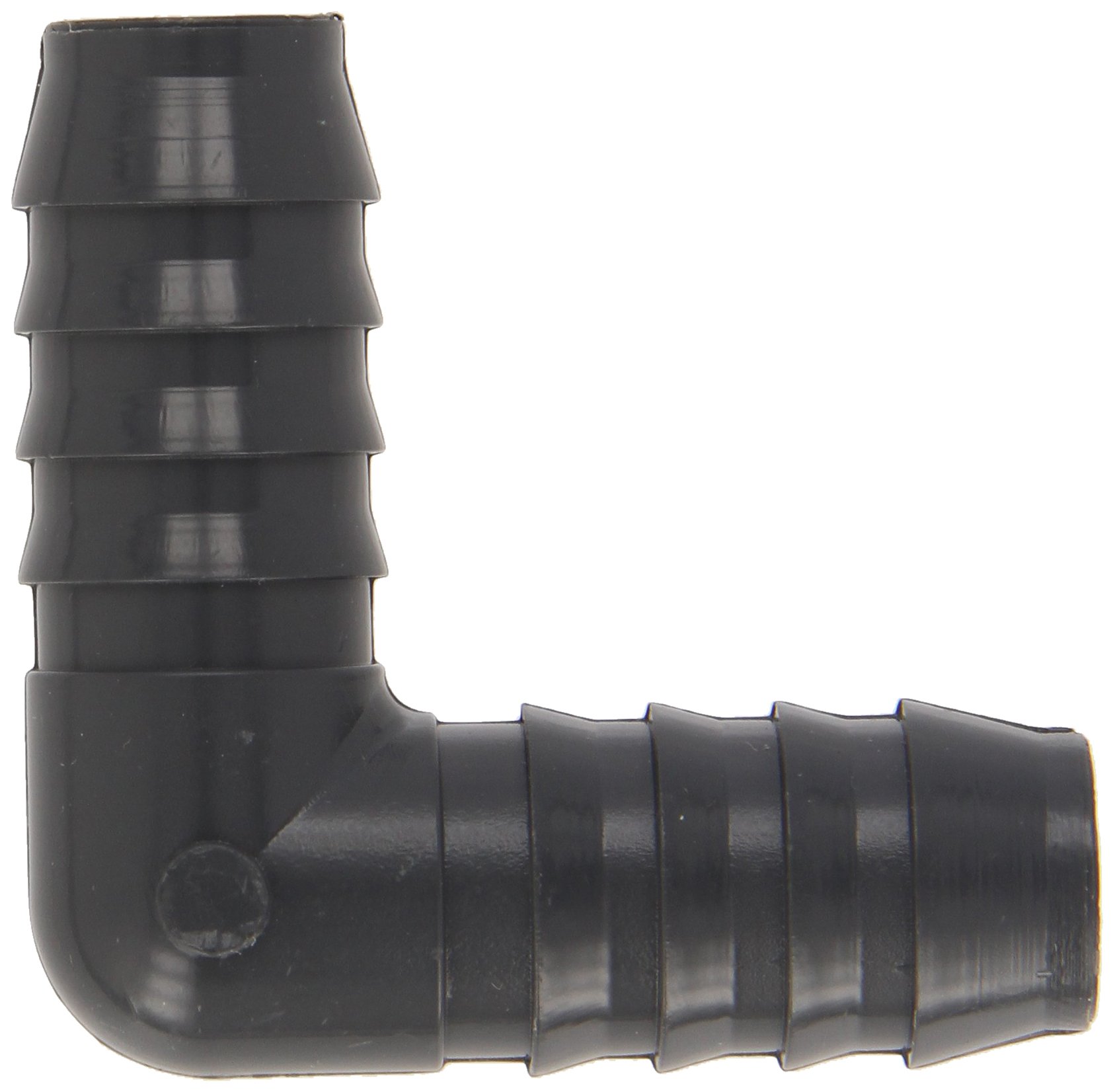 The Spears 1406 series tube fitting is made of gray polyvinyl chloride (PVC) plastic and has a 90-degree elbow shape for connecting schedule 40 polyethelene (PE) pipe at an angle. This elbow has barbed fittings on each end to create a tight seal on flexible PE pipe when used with a hose clamp (sold separately). PVC is corrosion resistant and lightweight, and has high strength. It resists reactions with acids, gasoline, alcohol, and hydrocarbons. The fitting meets D 2609 standards set by ASTM International for plastic insert fittings for use with PE pipe, as well as ASTM schedule 40 standards for wall thickness to support working pressure to 140 psi. It is certified by NSF International for use with potable water. Pipe fittings are components used for connecting, terminating, controlling flow, and changing the direction of piping in many different industries. When purchasing pipe fittings, consider the application, as this will affect material type, shape, size and required durability. Fittings are available threaded or unthreaded, in many shapes, styles, sizes, and schedules (pipe wall thickness). Spears Manufacturing produces thermoplastic fittings and valves for fluid, drain, waste, and vent systems. The company, founded in 1969 and headquartered in Sylmar, CA, meets International Organization for Standardization (ISO) standard 9001.