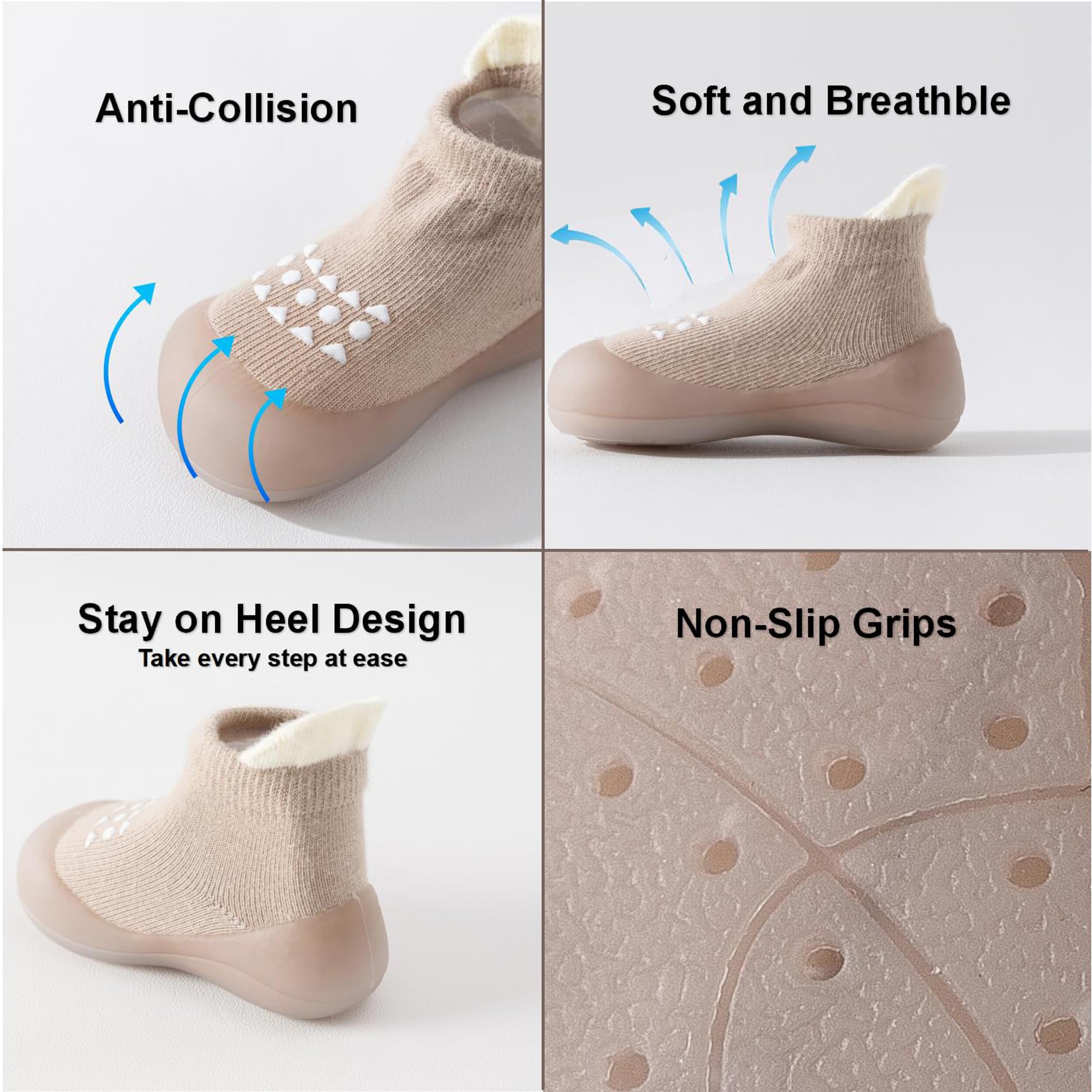 Toe Protection with Rubber Anti-Collision:The thickened Rubber Anti collision Shoe head, buffer impacts,protect your baby’s tiny feet from injury,keeping your baby’s feet secure as they move.
