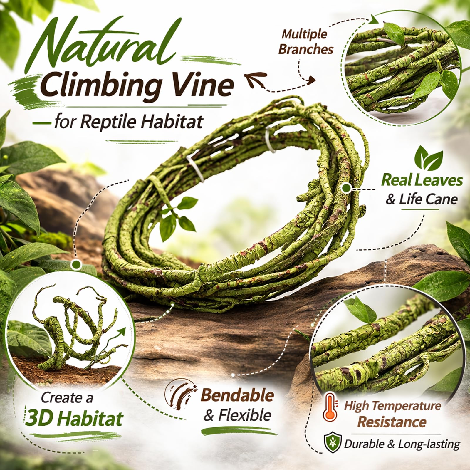 Safe Material for Reptile: Safe material the artificial terrarium plant made with non-toxic polyethylene plastic and soft silk leaves. Just dip in water to clear debris. These vines are bendable, life-like vines with a natural feel and look and can be twisted together with vines of different sizes to create a 3-D habitat.