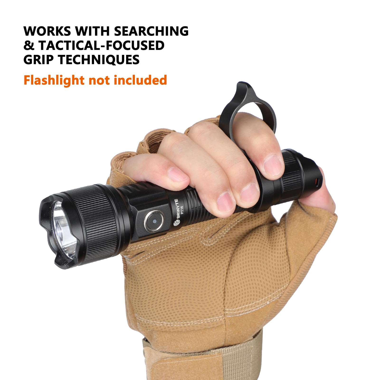 CONVENIENT TO HOLD UP YOUR LIGHT: Reliably deploy and index a flashlight from both pockets and pouches, using the Brinyte flashlight ring. Users can use a natural one-handed or two-handed grip Technique, taking advantage of the wide thumb rest with traction features. Easy to hold up your flashlight in multiple scenarios.