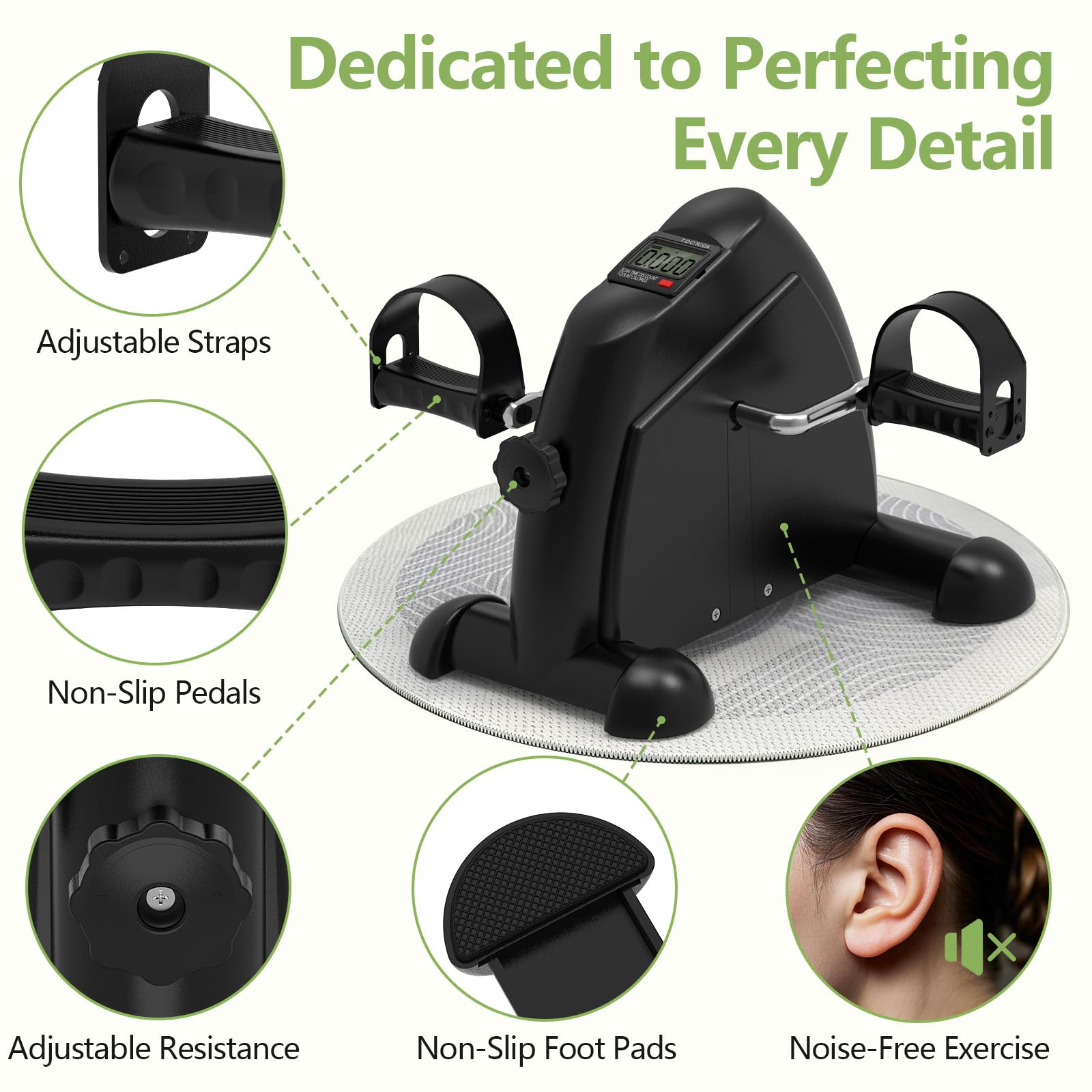 【Compact & Portable Design】 With a space-saving size of 13.7" x 15.7" x 11.7", this pedal exerciser fits easily under a desk, beside the couch, or in a cabinet. It’s quick to assemble, easy to carry with the integrated handle, and perfect for convenient workouts at home or in the office.