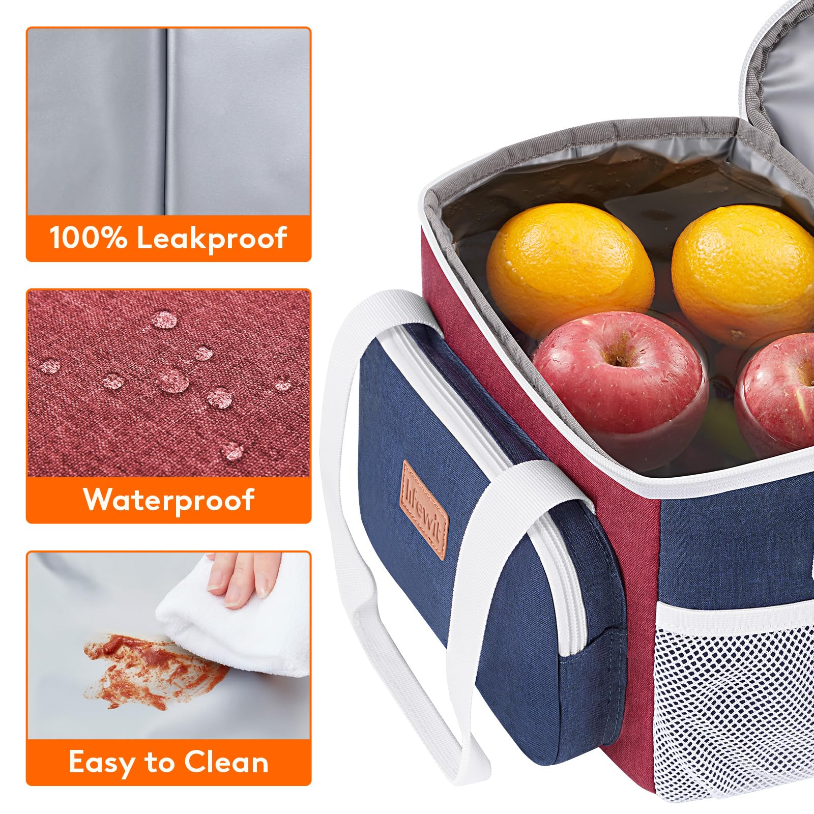 Leakproof & Waterproof: The exterior of lunch box for men is constructed out of 600D water-resistant dirt-proof Oxford fabric for durability and water proofing and easy cleaning. Even when full with water and ice, it holds fruits and drinks well, will not leak at all