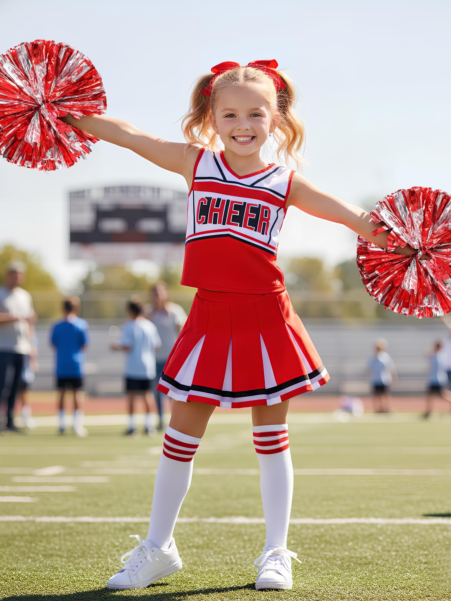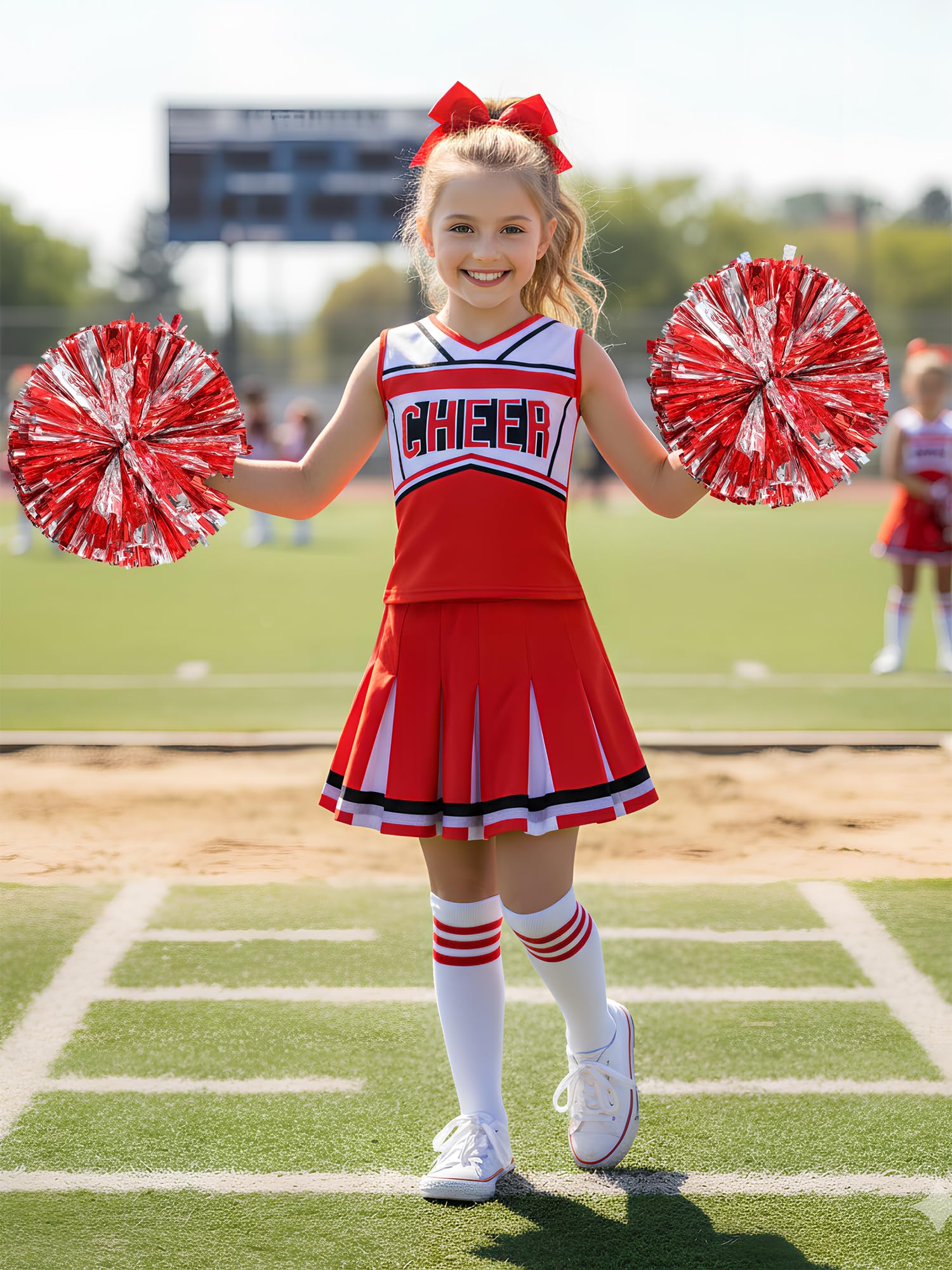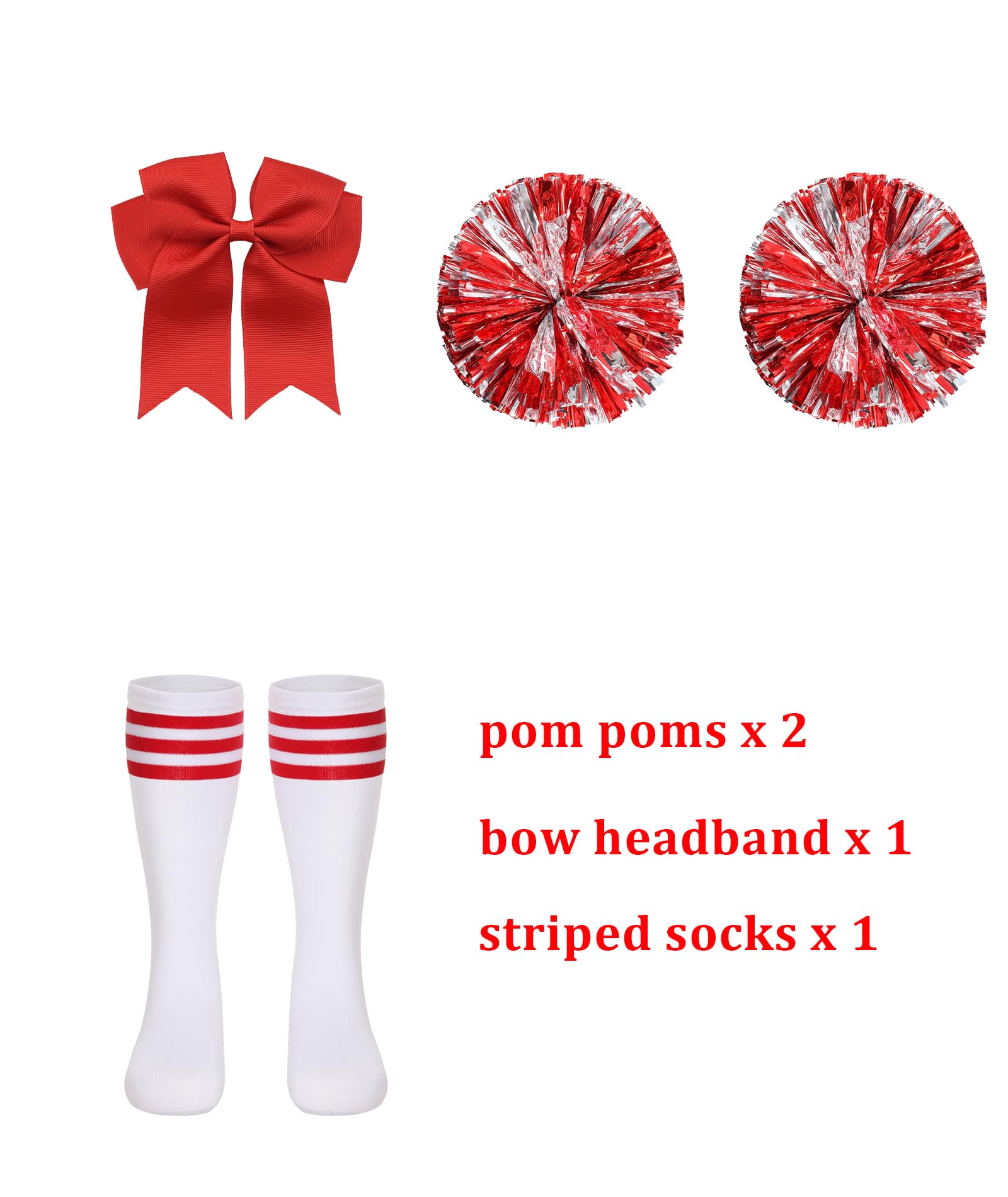 Coordinated Sparkle Accessories:Adds matching hair bow and striped socks that enhance overall uniformity while providing authentic cheerleader aesthetics.