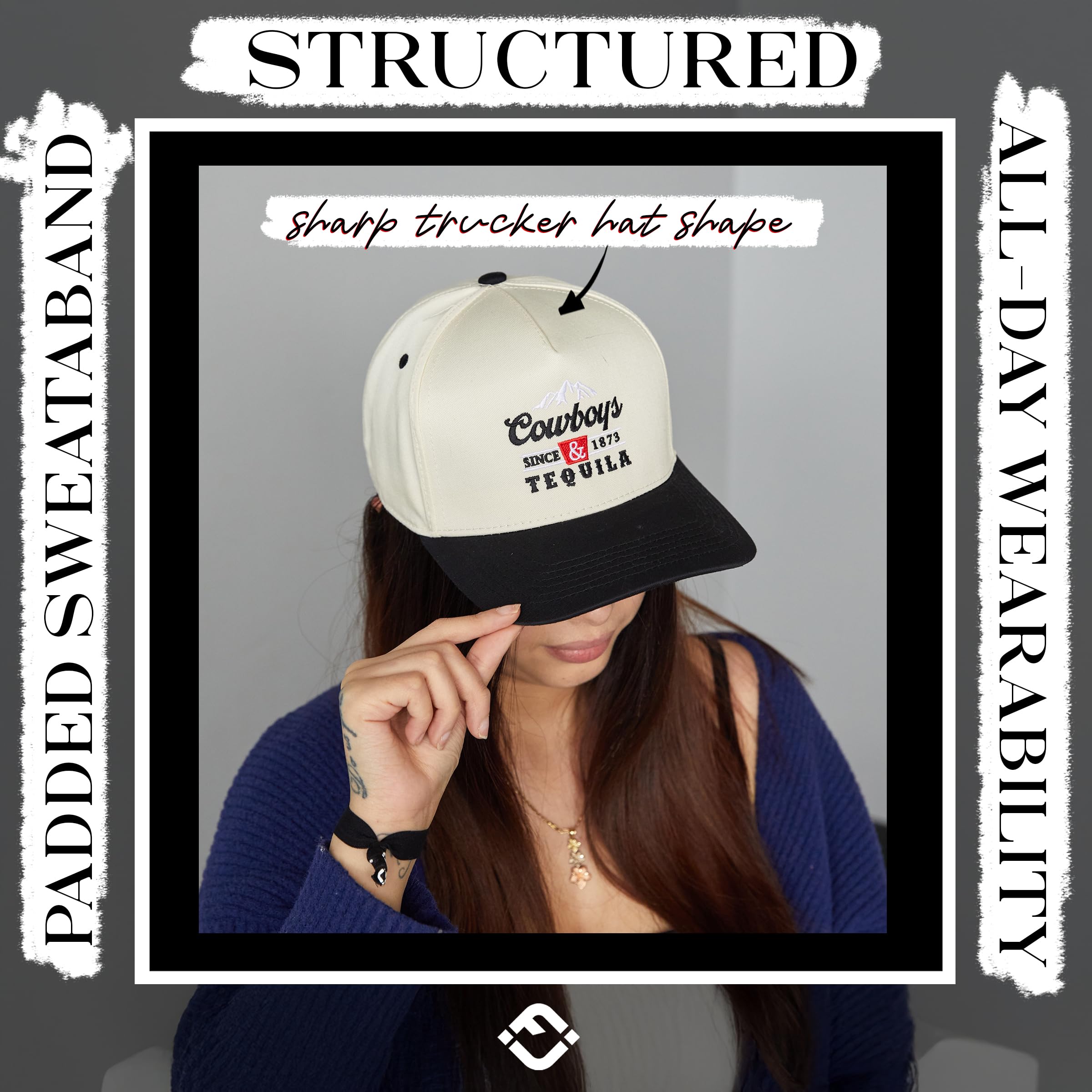 GREAT QUALITY: These two-tone retro baseball caps are 35% cotton and 65% polyester, ensuring a soft, comfortable fit, while also providing durability and breathability. This 5 panel structured hat boast high-quality, detailed embroidery designs, adding a touch of elegance and sophistication to any occasion. Despite their structured design, these hats offer a lightweight feel that contributes to their comfort and suitability for extended wear. Hand wash only.