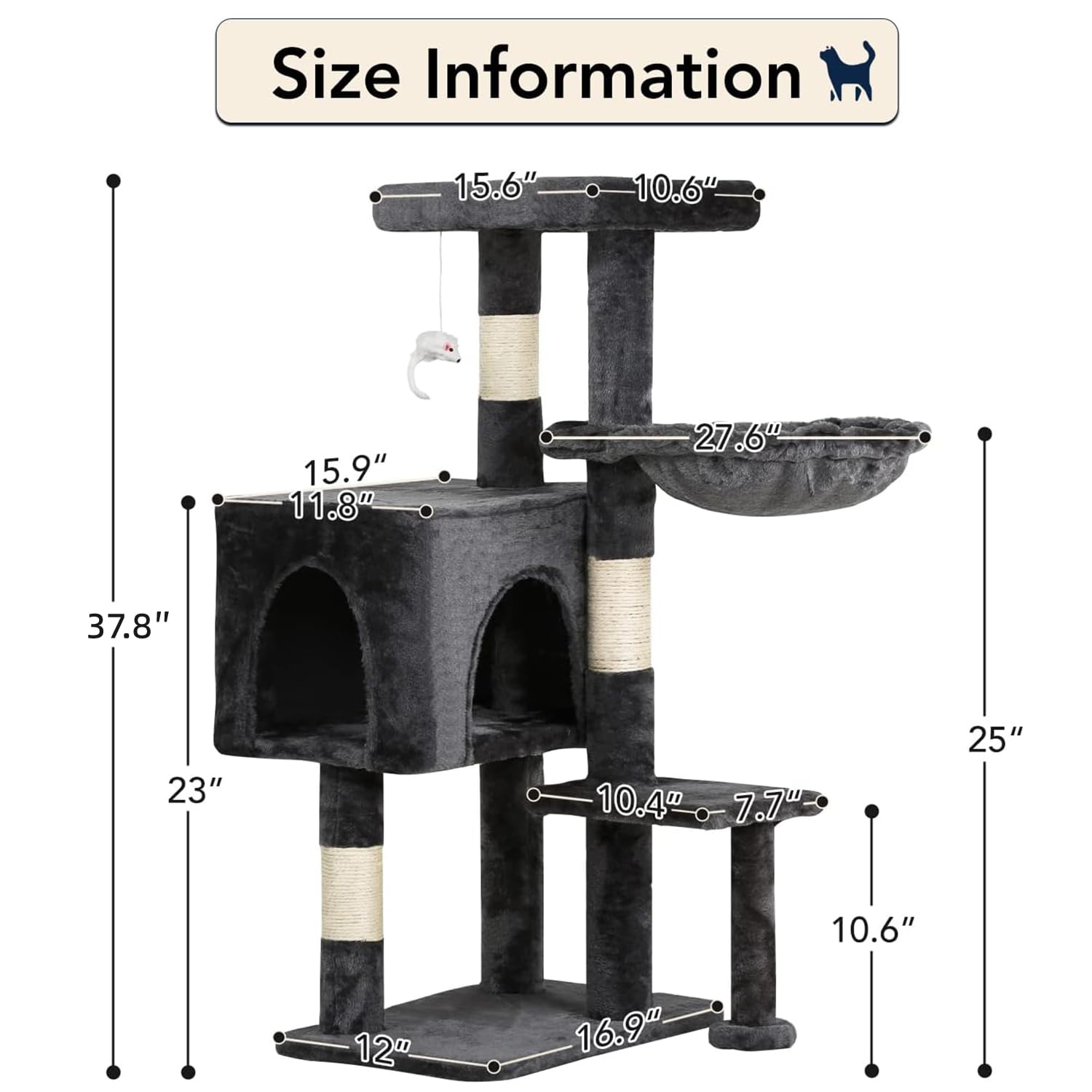 SCRATCHING POSTS & INTERACTIVE TOY: Sisal cat scratching posts satisfy your cat’s natural instincts, while the dangling plush toy keeps your kitty entertained and encourages playful activity.