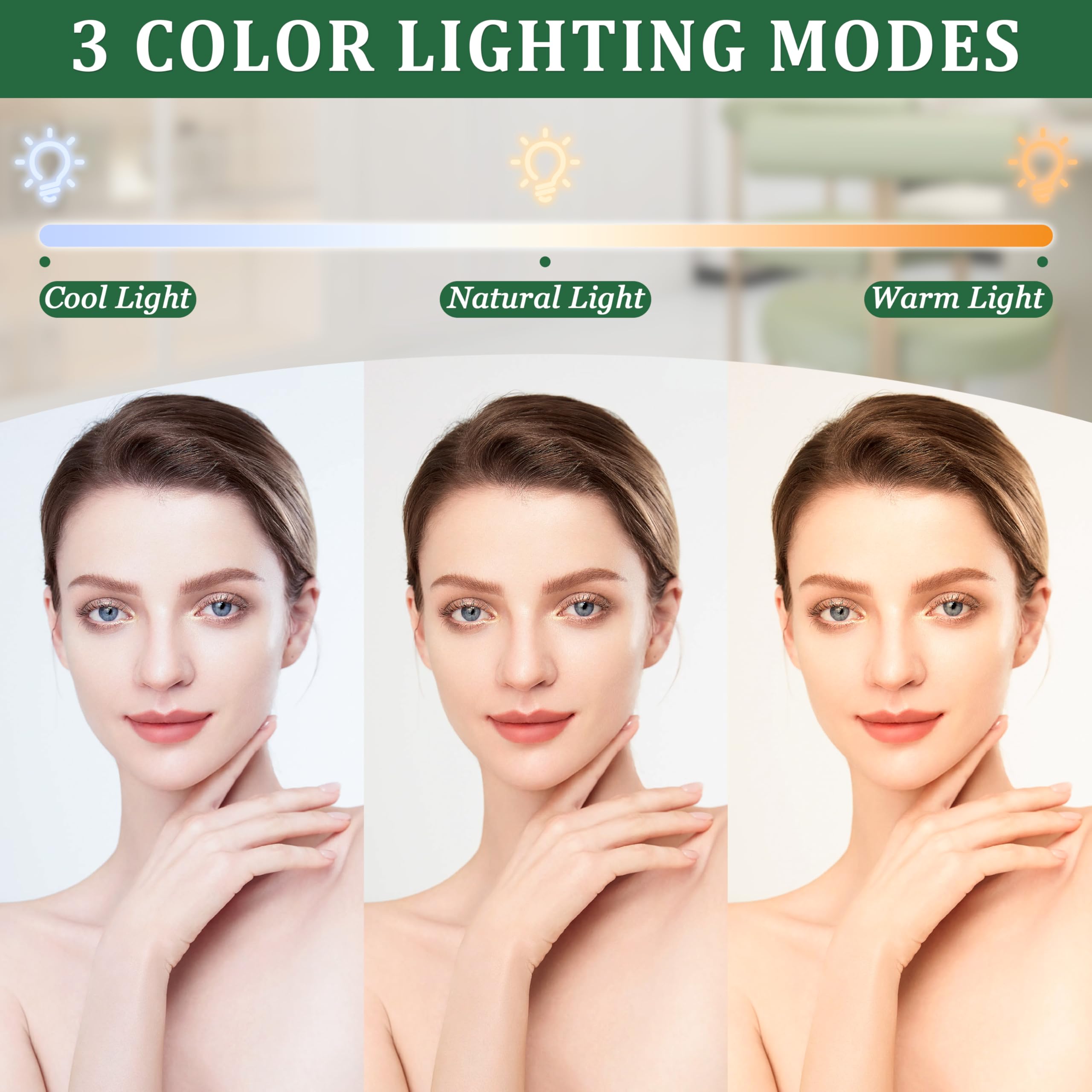 đĄă3-Color Lighting & Stepless Dimmingă Enjoy studio-quality lighting with three color modesâWarm (3000K), Natural (4500K), and Cool (6000K)âdesigned to match any environment. Touch controls offer 10%-100% adjustable brightness, and a memory function recalls your last setting. Perfect for flawless makeup, skincare, and selfies.