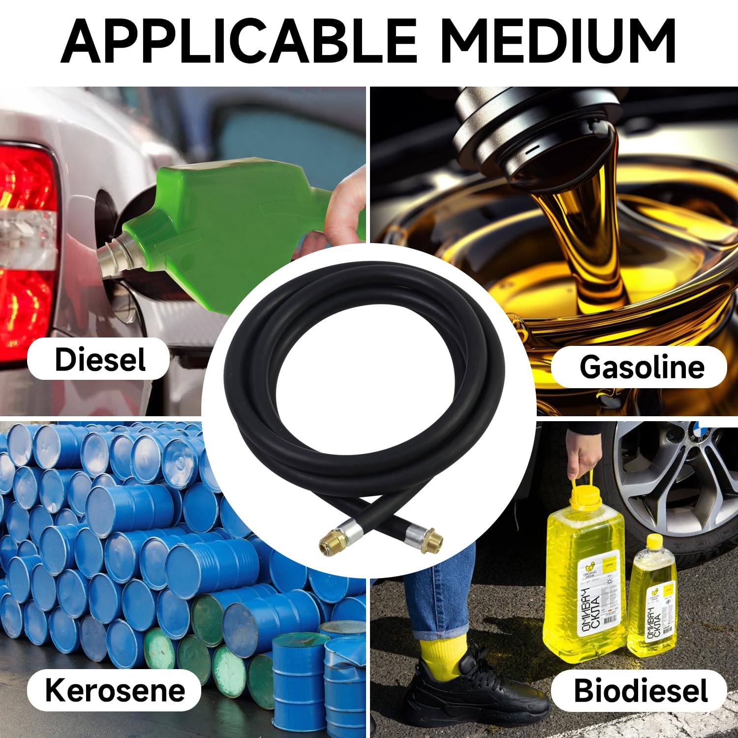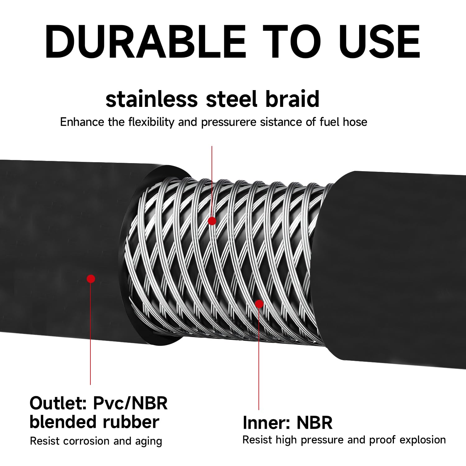 Durable Construction for Safety Built with a nitrile rubber inner, stainless steel braid reinforcement, and a CPE Chlorinated Polyethylene outer layer, this hose offers superior resistance to abrasion, UV rays, and harsh chemicals. The explosion-proof copper connectors ensure maximum safety during fuel transfer.