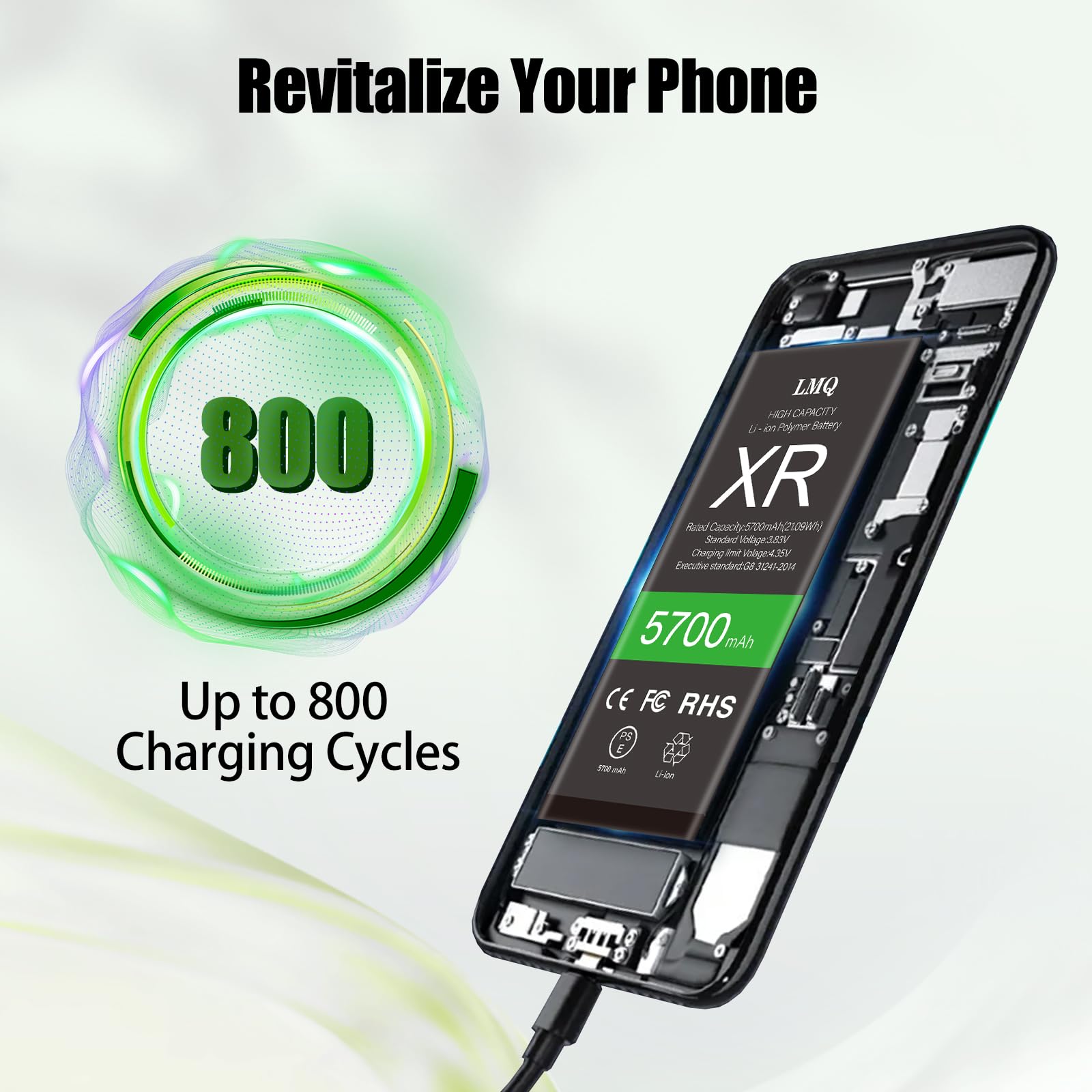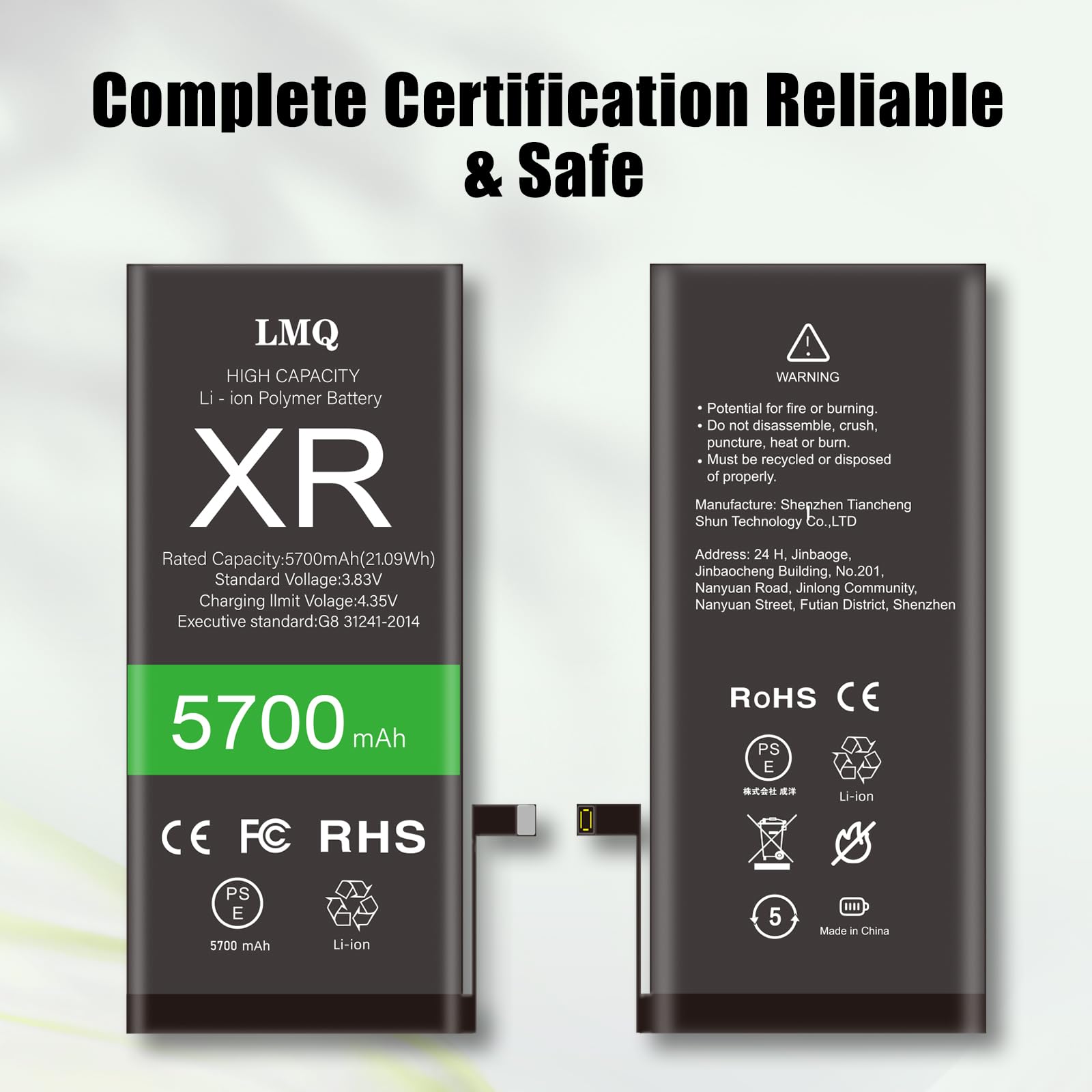 【Safe and Quality】LMQ XR Replacement Battery is made of A+ grade high quality batteries. Built-in smart chip to prevent over charging, over discharging and overheating protection, short circuit protection, high safety performance, long service life.Meanwhile, the iPhone XR batteries are tested by third party security, such as FCC, CE, ISO9001/14001 and ROHS Certificated. You can buy it with confidence.