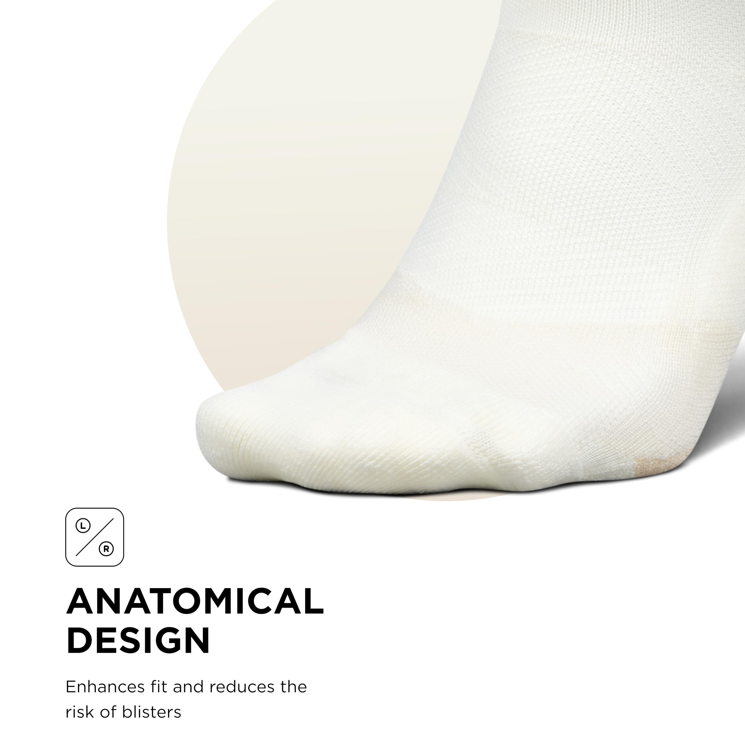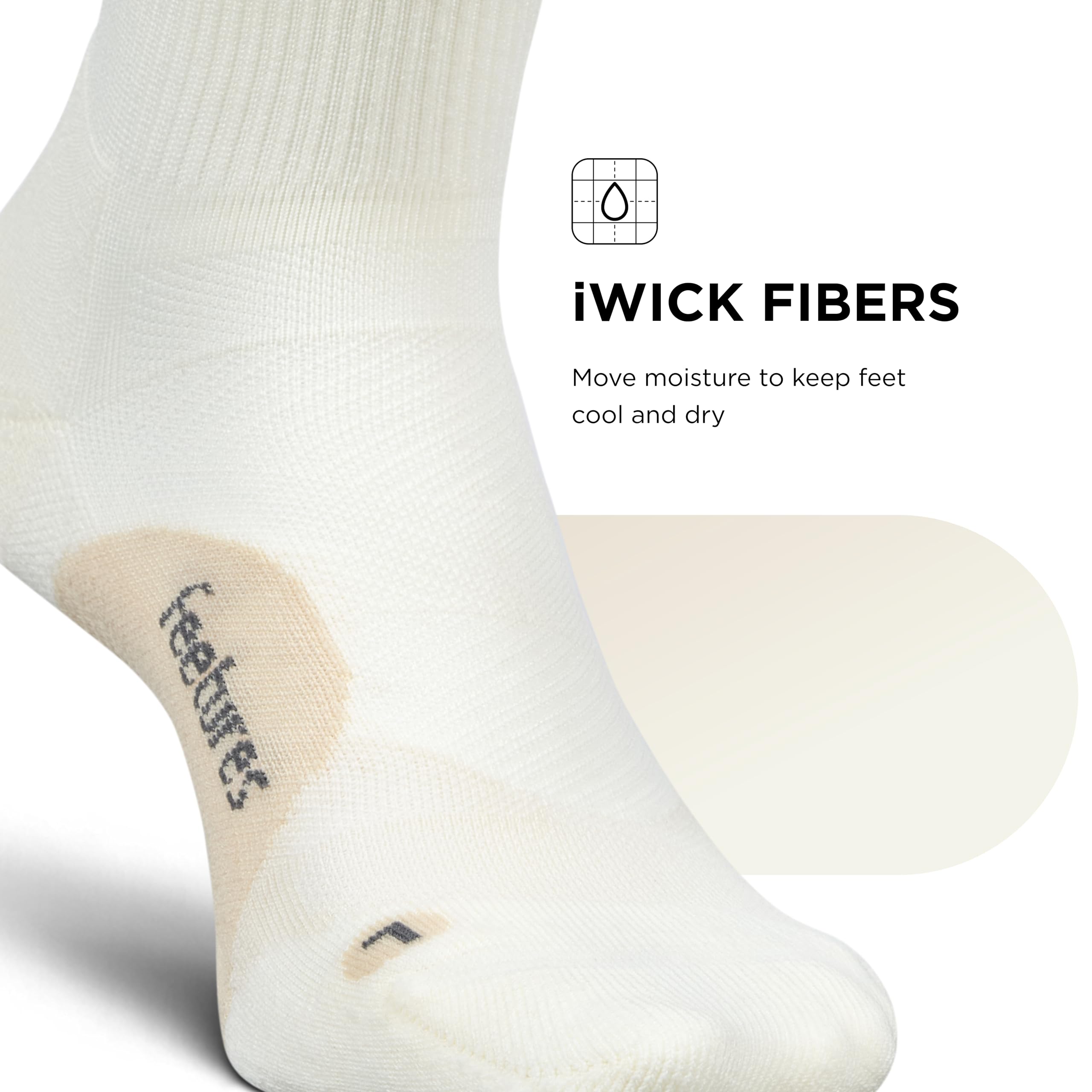 Athletic Socks: These Feetures socks are engineered with Targeted Compression and anatomical design that conform to the left and right structure of the foot providing a custom-like fit and reduced risk of blisters because of the seamless toe construction