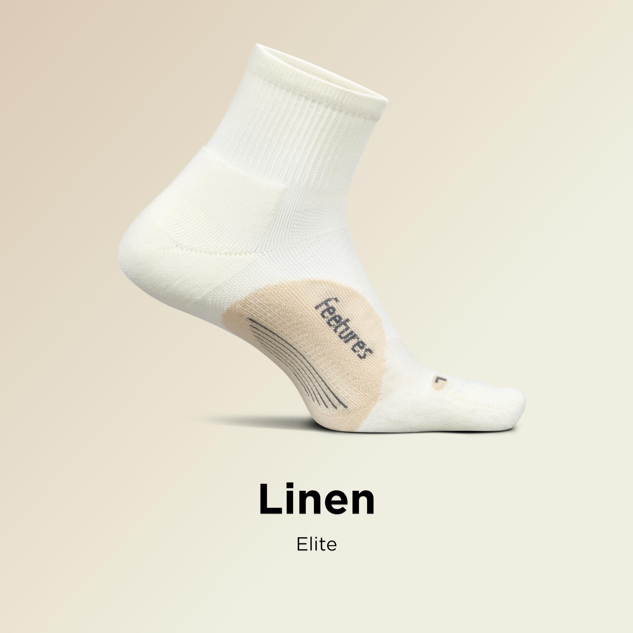 Description Feetures Elite socks are engineered with an enhanced fit and feel. If you're looking for the best performance sock on the planet, our Elite socks have it all. They feature Targeted Compression, which is zone-specific compression where you need it most for superior comfort and support. As a result, they have an anatomical design, meaning they conform to the left and right structures of the foot. This design provides a custom-like fit and reduced risk of blisters. Plus, our Light Cushion is added for impact protection. These quarter socks have a 2" cuff that rests just above the ball of your ankle for more coverage. Dedicated to helping people achieve their personal best and pursue an active lifestyle, Feetures designs high-quality socks that provide comfort and support recovery. Our promise to our customers is to deliver fit, feel, and durability to ensure they have the highest quality product to support them. Feetures socks deliver this promise with a custom-like fit, anatomical design, targeted compression, seamless toe, and more features specific to our different sock lines. We strive to innovate in our category and create products that are made to last to ensure we deliver value to our customers.