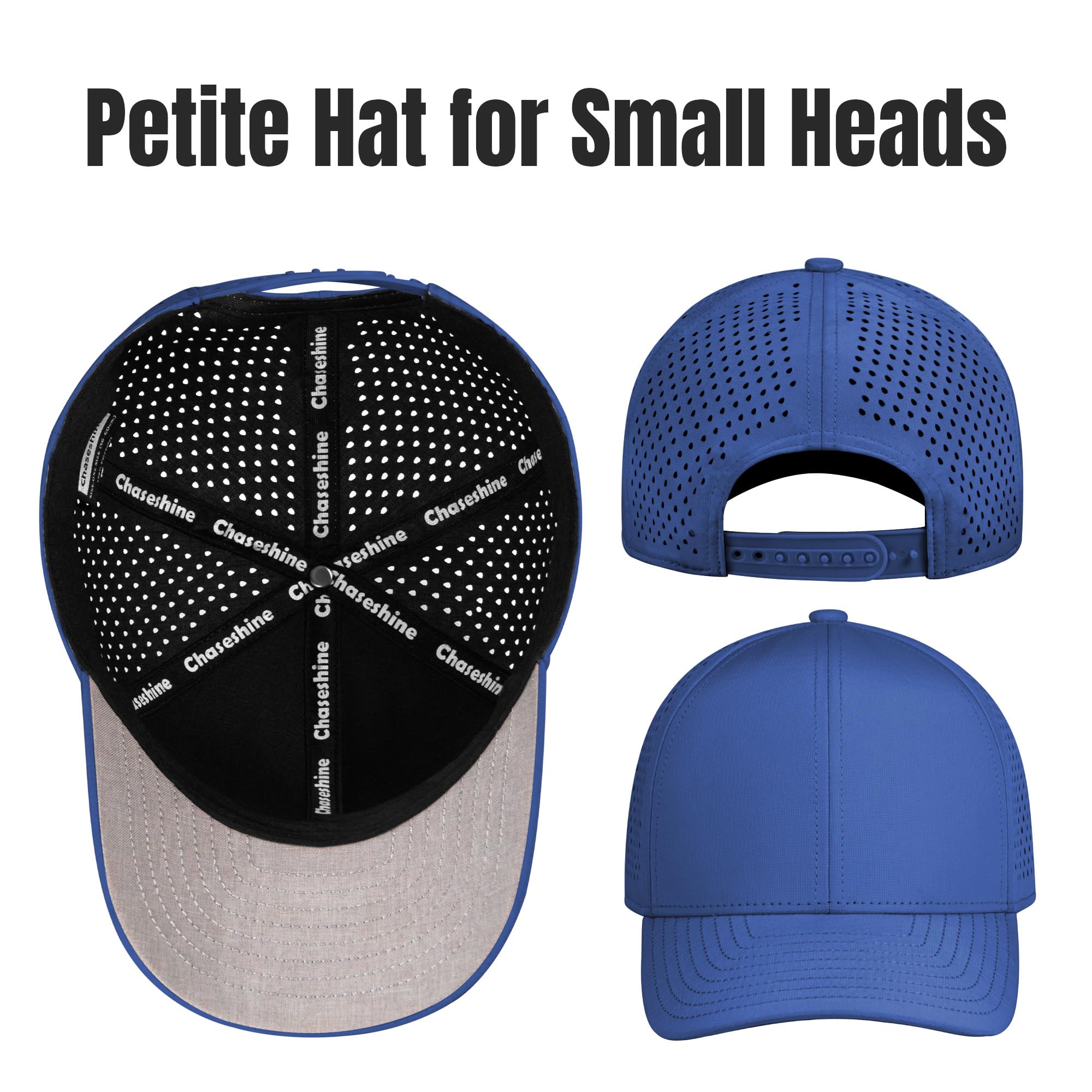 Petite Hat for Small Heads: SM(Medium) size,designed for people with small head,21.1"-22.9"/54cm-58cm,if your head circumference is smaller than normal, Chaseshine hat is your best choice, whether for adults or children,women or men, this blue petite curved brim hat will fits you well