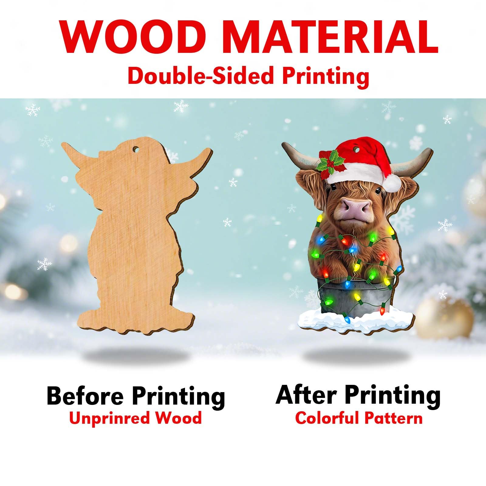 Material: Crafted from high quality wood, our christmas ornaments are odorless and safe. Double-sided printed design with colorful fun animal prints. High quality materials ensure durability and will last a long time.