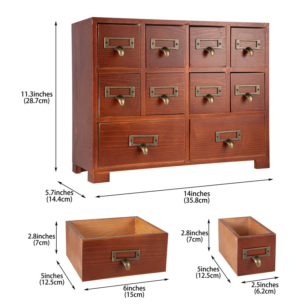 ๐ [ DIMENSIONS ] ๐ DIMENSIONS : Cabinet 14 * 11.3 * 5.7 inches. Large Drawer๏ผInside๏ผ: 6 * 5 * 2.8 inches. Small Drawer๏ผInside๏ผ: 2.5 * 5 * 2.8 inches. A great little storage unit for a desktop, counter, dresser, etc. (PLEASE CHECK THE COMPARTMENT SIZE BEFORE PURCHASE)