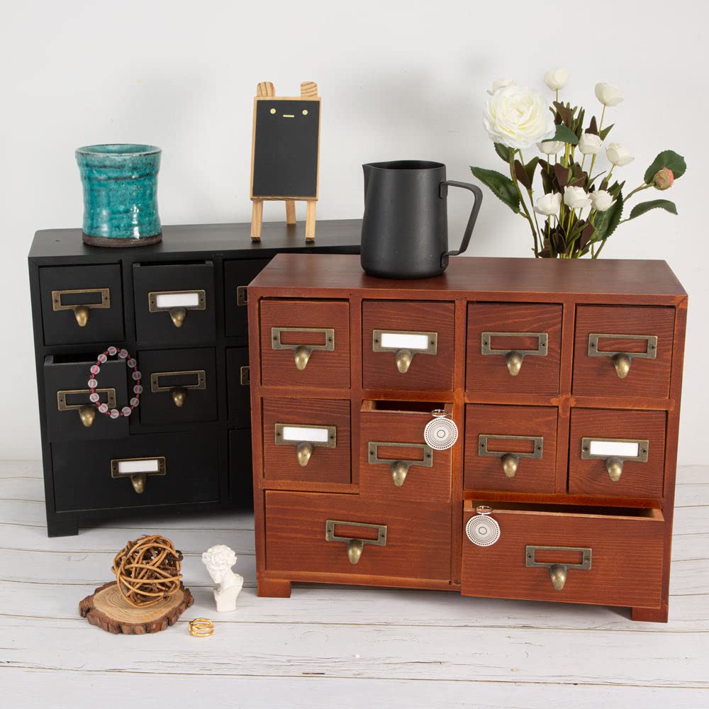 ๐ [ PACKAGE ] ๐A cute wooden apothecary cabinet with 10 drawers and perfect size labels. All drawers have handles. Apothecary cabinet came very well packaged with corner protections for box arrived in perfect condition.