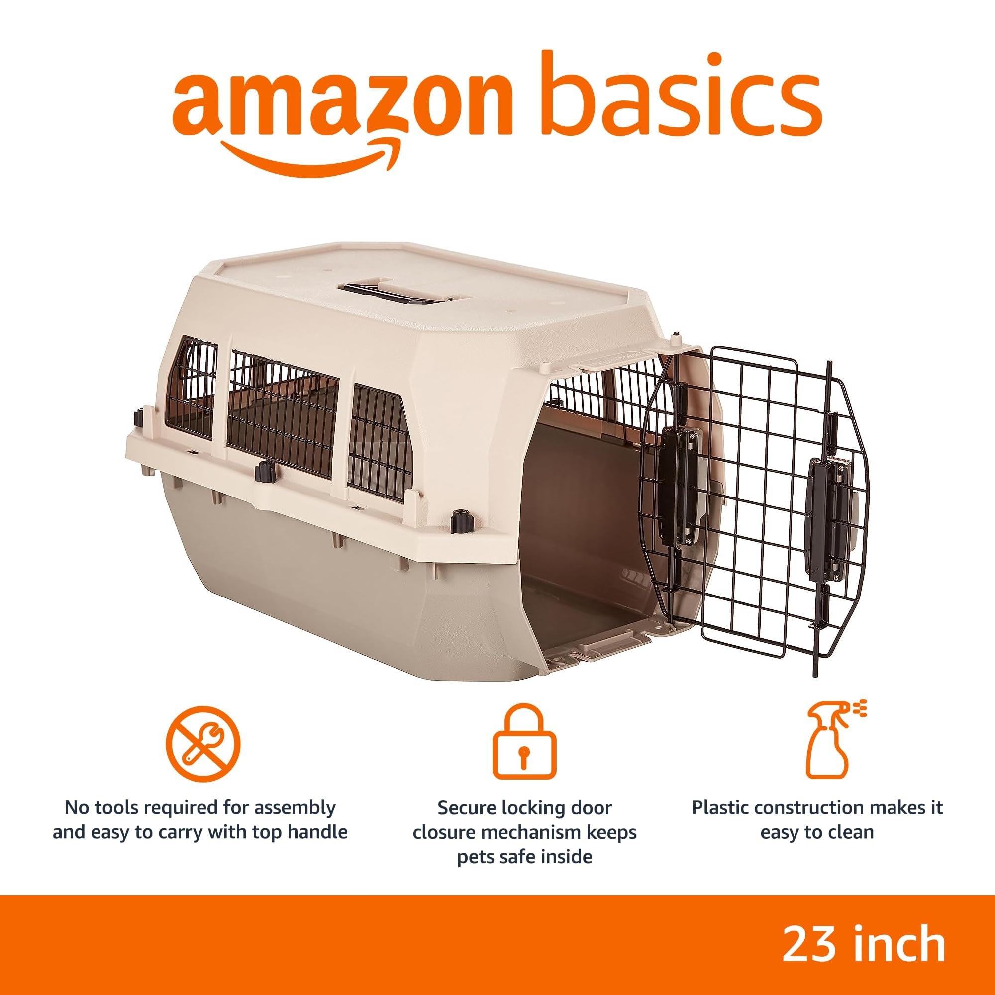 Product Description Amazon Basics Pet Carrier Kennel With Metal Wire Ventilation, 23-Inch From the Manufacturer Amazon Basics