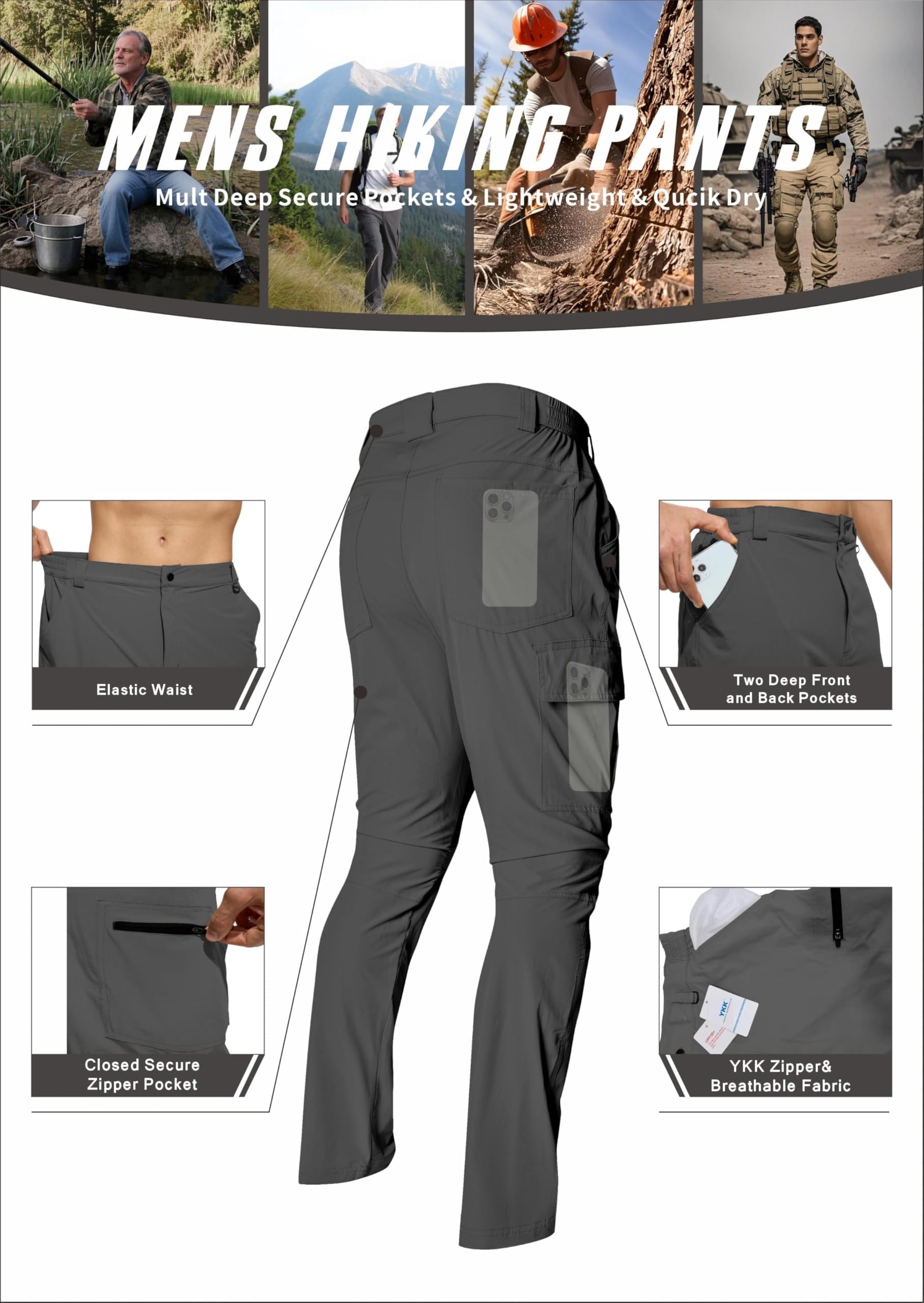 LINLANG EN Mens Cargo Pants Water Resistant Lightweight Quick Dry Work Pants Travel Fishing Climbing Outdoor Hiking Pants Dark Grey-S-32