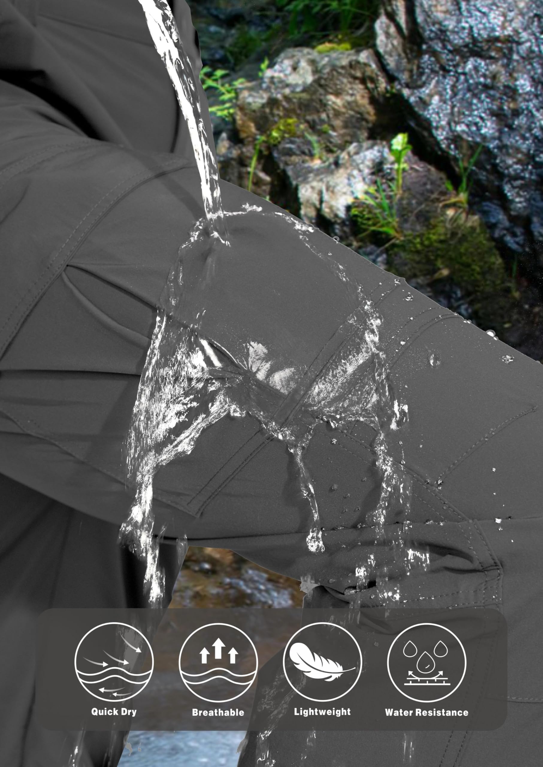 Lightweight Quick Dry: Hiking pants has the characteristics of elasticity, wrinkle resistance, and no deformation, soft to touch and comfortable to wear. The water resistance design,lightweight quick dry,more breathable in warm weather.