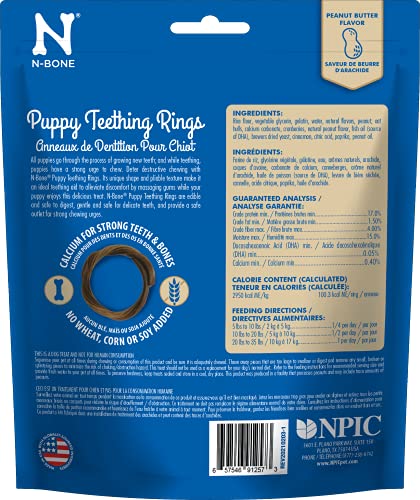 N-Bone Puppy Teething Rings Peanut Butter Flavor Dog Treat, 3 Count Bag, 3.6-oz