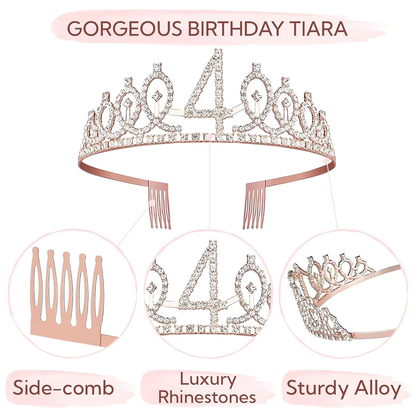 【4th Birthday Tiara】: The 4th birthday crown headband is made of quality alloy and shiny rhinestones, rose gold color highlights elegance. Crown with combs that make sure it can grip the hair more tightly for fitting girls.