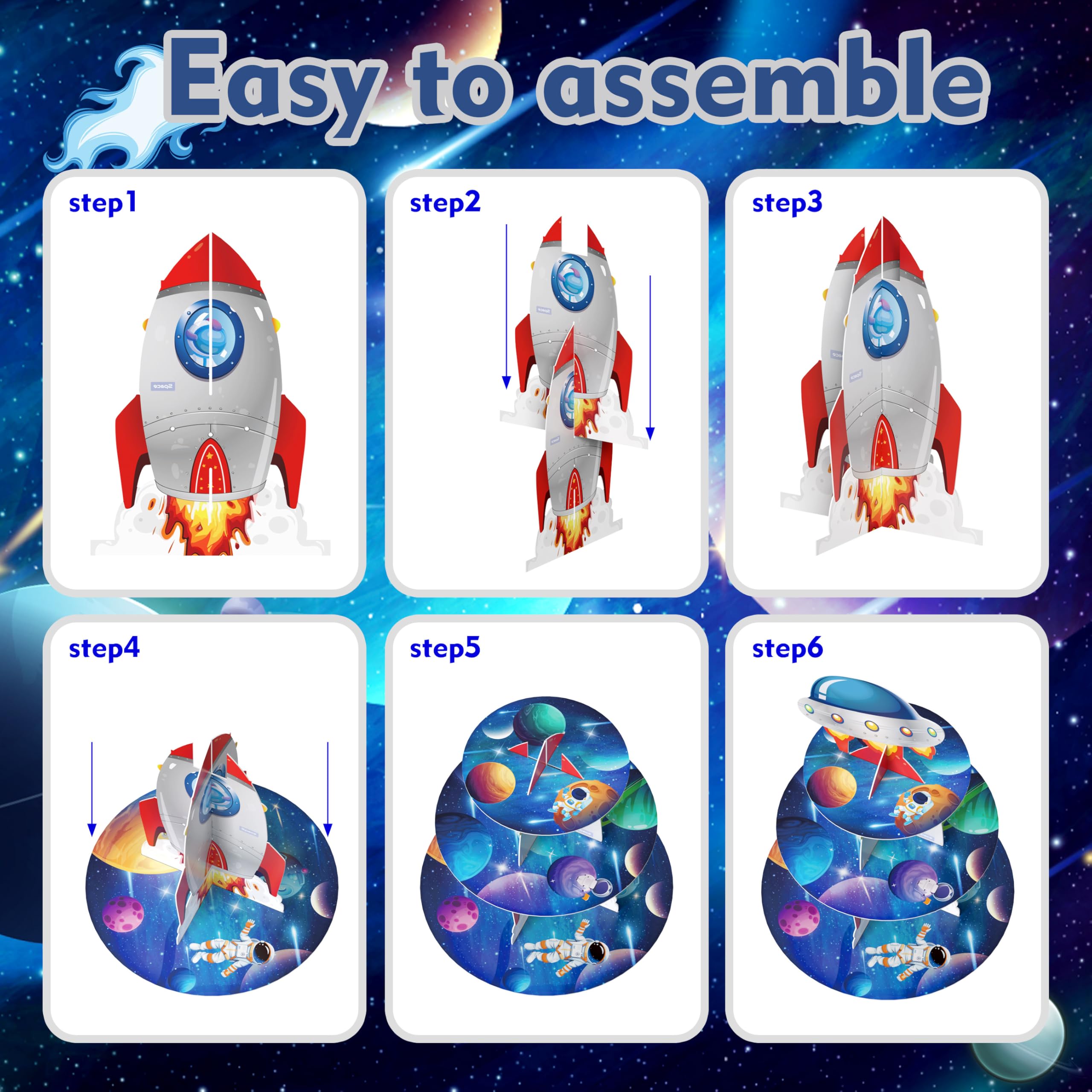 【Quality Material】: the 3 tiered space rocket UFO cupcake stand is made of quality cardboard, and features crossed structure to make the cupcake stand more sturdy, not easily shake or bend, convenient for you pick it up and move it; It’s easy to clean, safe, non-toxic and reusable