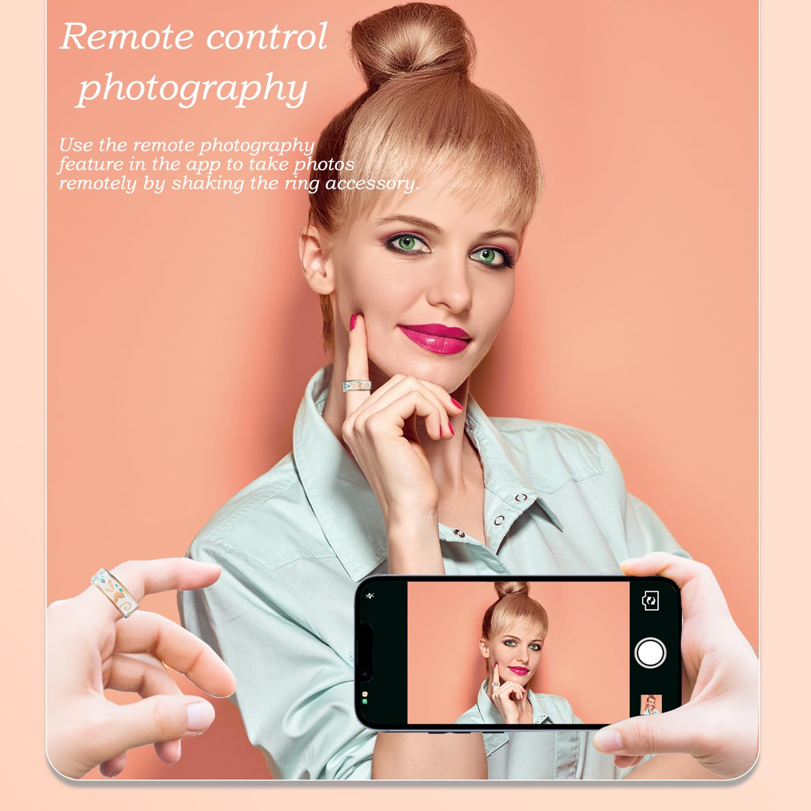 Family Care Mode: Securely monitor loved ones' health trends via the app. Bonus Feature: Use the ring as a remote shutter control for your phone camera to snap hands-free photos effortlessly.