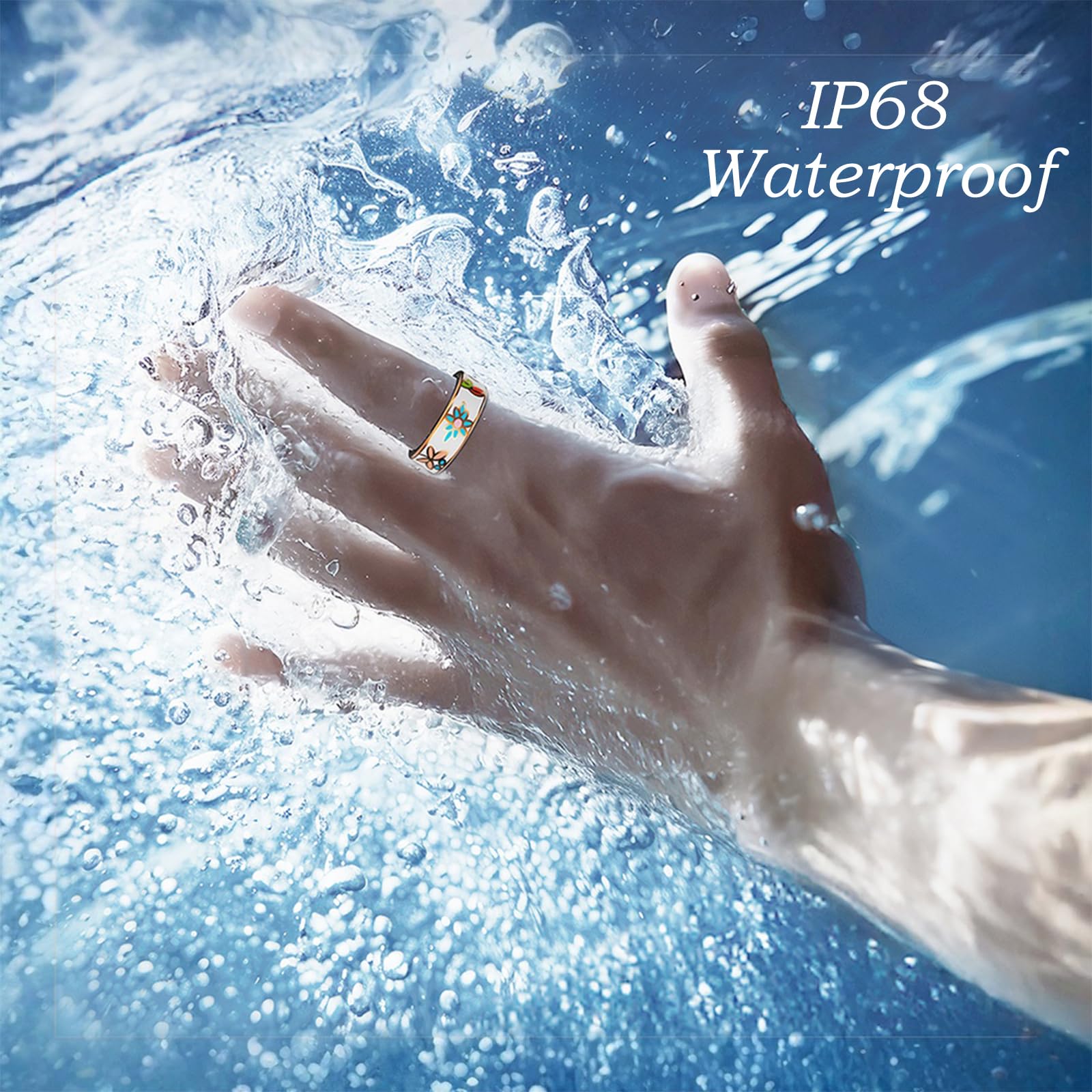This rose gold smart ring combines French enamel engraving craftsmanship with cutting-edge health monitoring technology. weighs only 4-5 grams. The built-in high-precision sensor can achieve: 24-hour continuous heart rate monitoring (error ± 2bpm) and blood pressure tracking, blood oxygen saturation detection (SpO2), sleep stage analysis (deep sleep/light sleep/REM) and sleep scoring, automatic step counting and calorie consumption calculation. It has passed IP68 waterproof certification and supports swimming, showering, etc. It is compatible with iOS 8.0+/Android 5.1+ systems, has stable Bluetooth 5.0 connection, uses magnetic fast charging technology, and can last for 5-7 days on a single charge, with no subscription fees. This product combines health technology with high-end jewelry craftsmanship, and is particularly suitable for modern who pursue quality life.