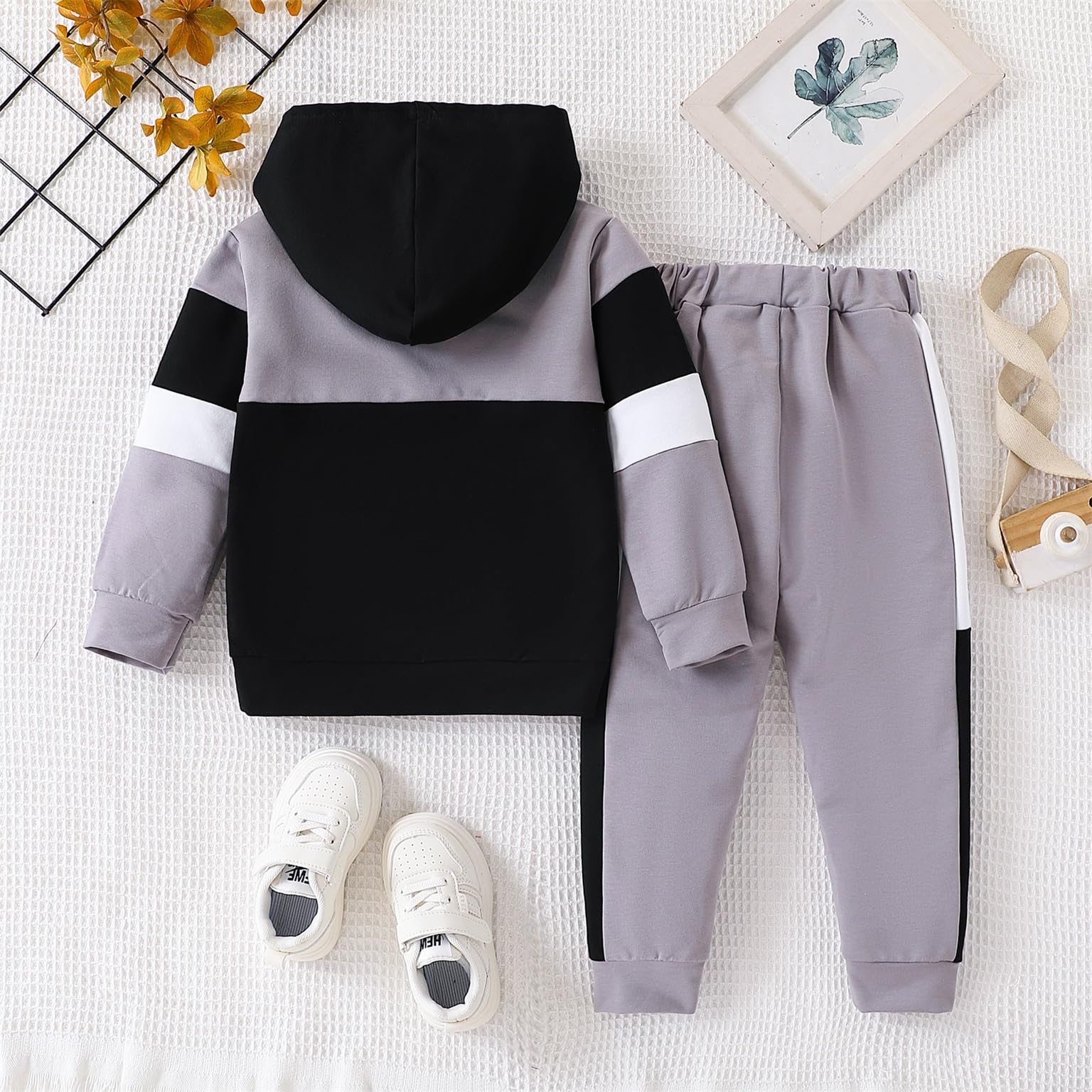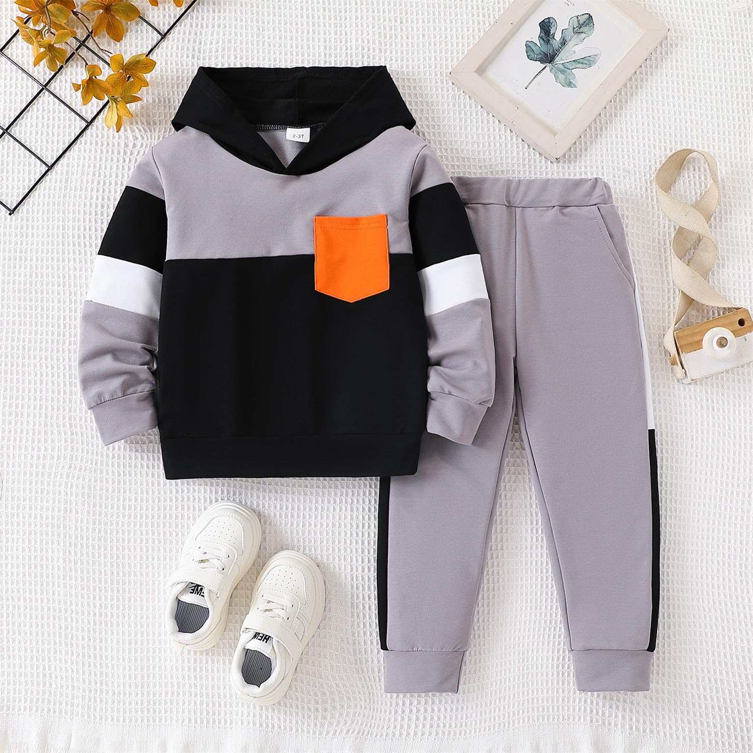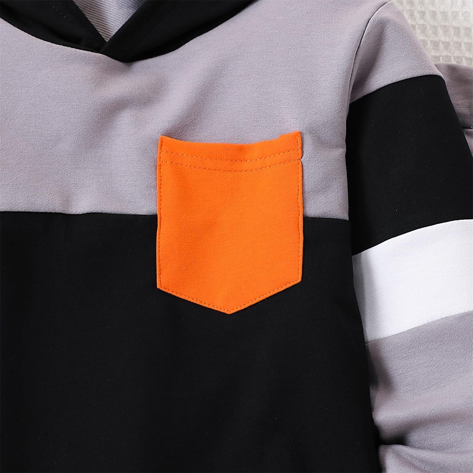 Description Kid Boys Clothes Long Sleeve Color Blocked Hoodie Top Pants 2PCS Sweatsuit Fall Boys Outfits