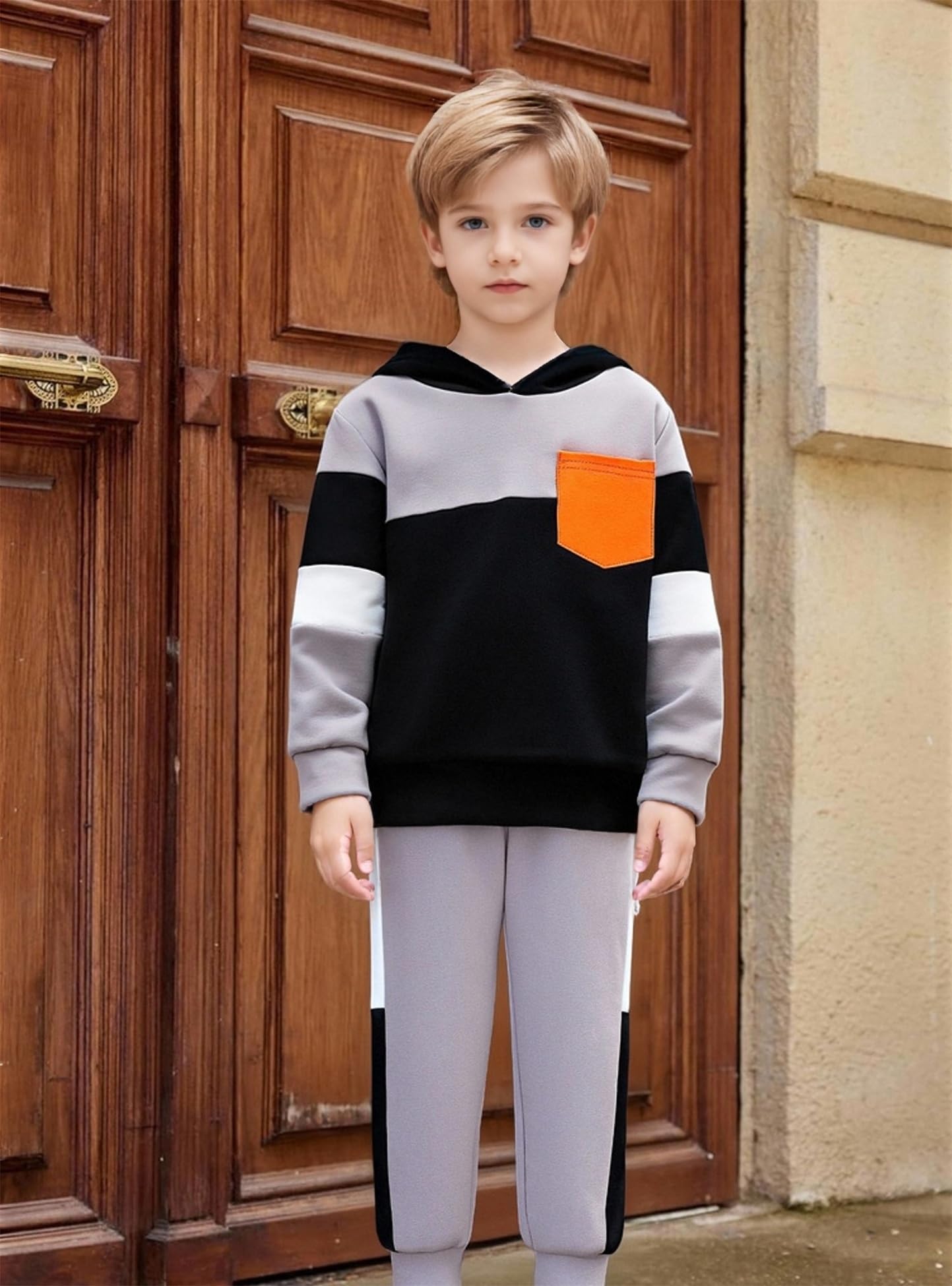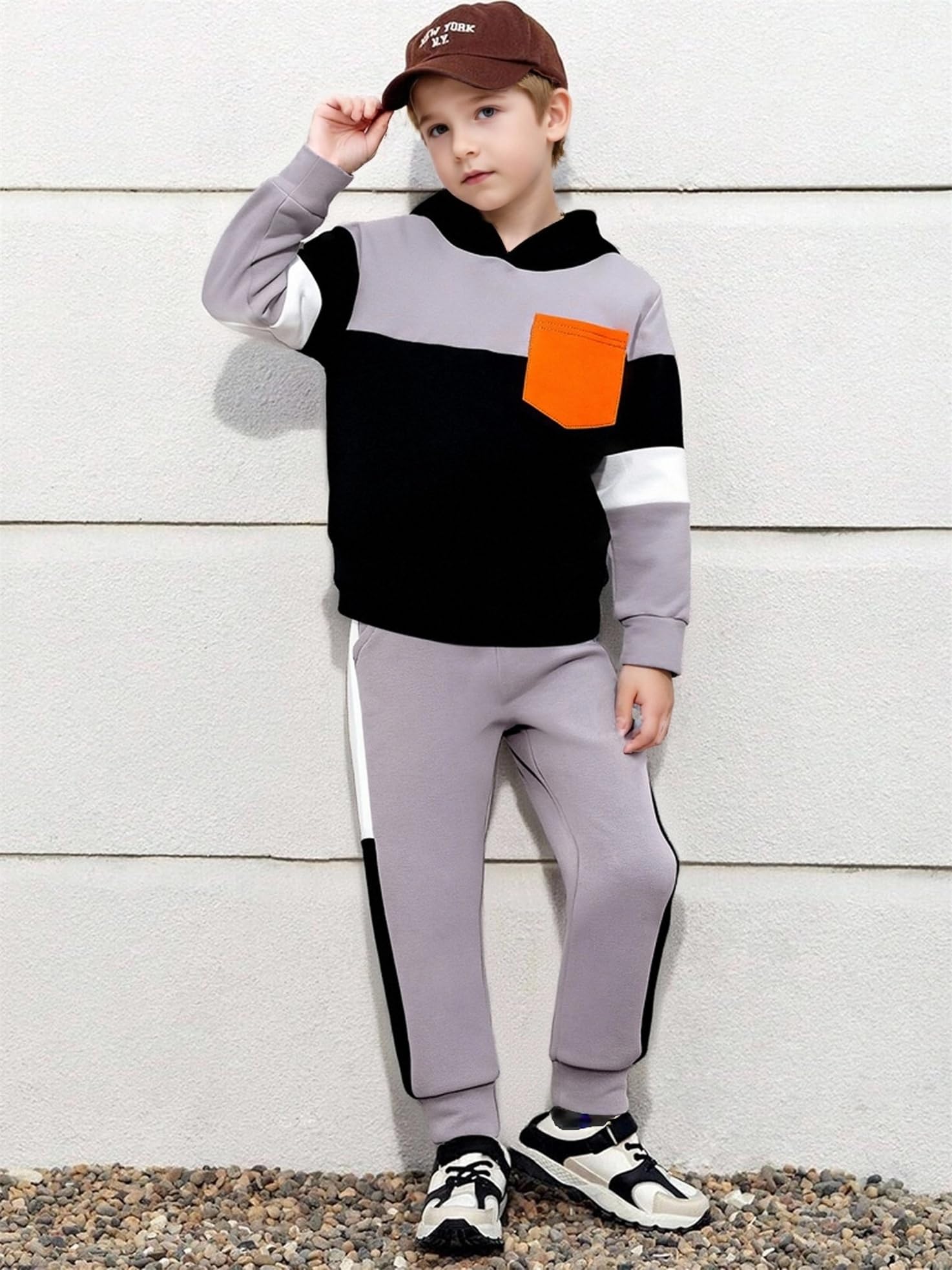 Design: Featuring a trendy color - block hoodie with matching pants, this set combines fashion and functionality. The easy - clean fabric simplifies parenting, while the eye - catching design makes kids look stylish and feel confident. Perfect for little adventurers!
