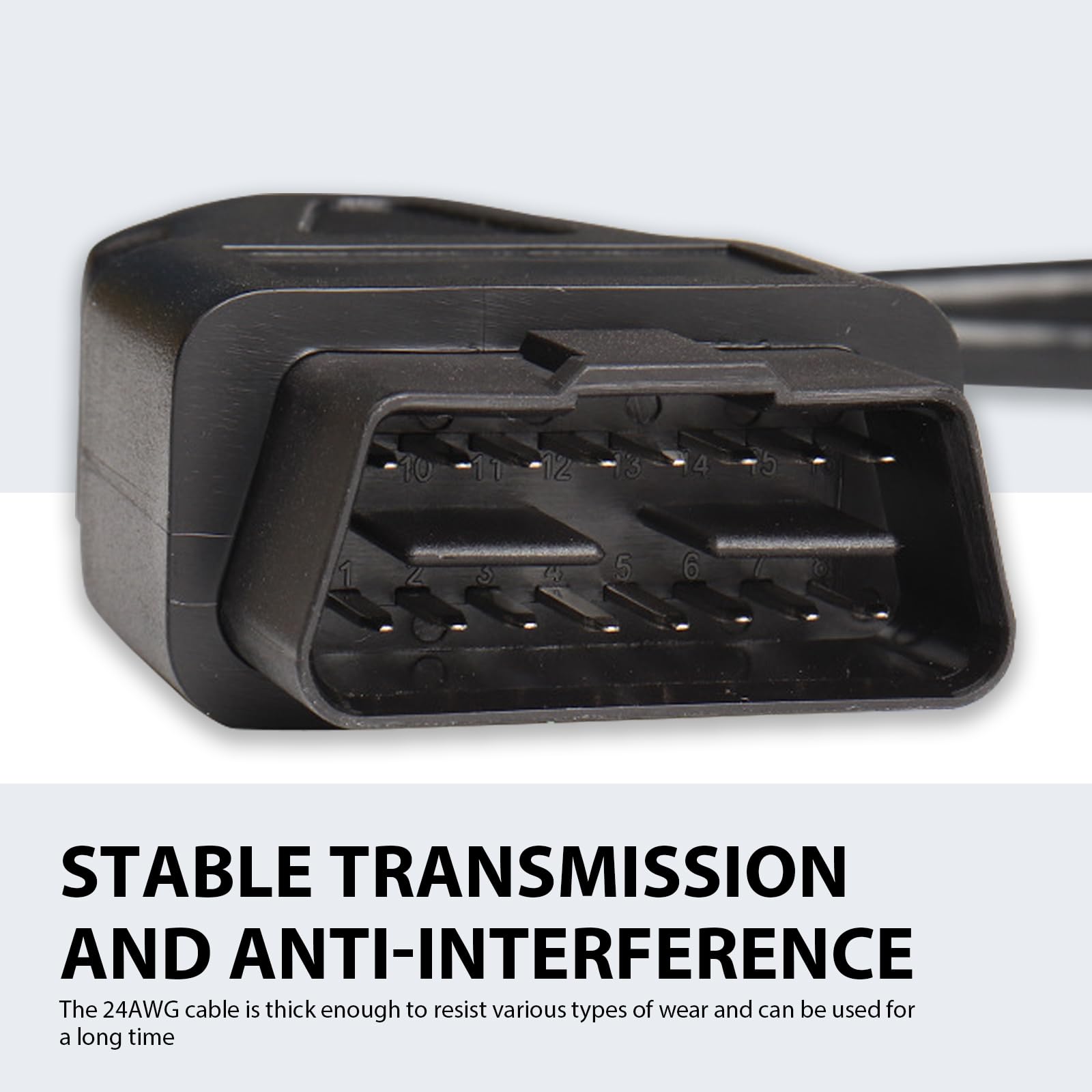 Standard Interface: Standard 16-pin original car interface, with a plug-and-pull life and strength of up to 10,000 times, and its service life is more than three times that of ordinary plugs. The OBD standard interface is resistant to plugging and unplugging, and the transmission remains stable after long-term use.