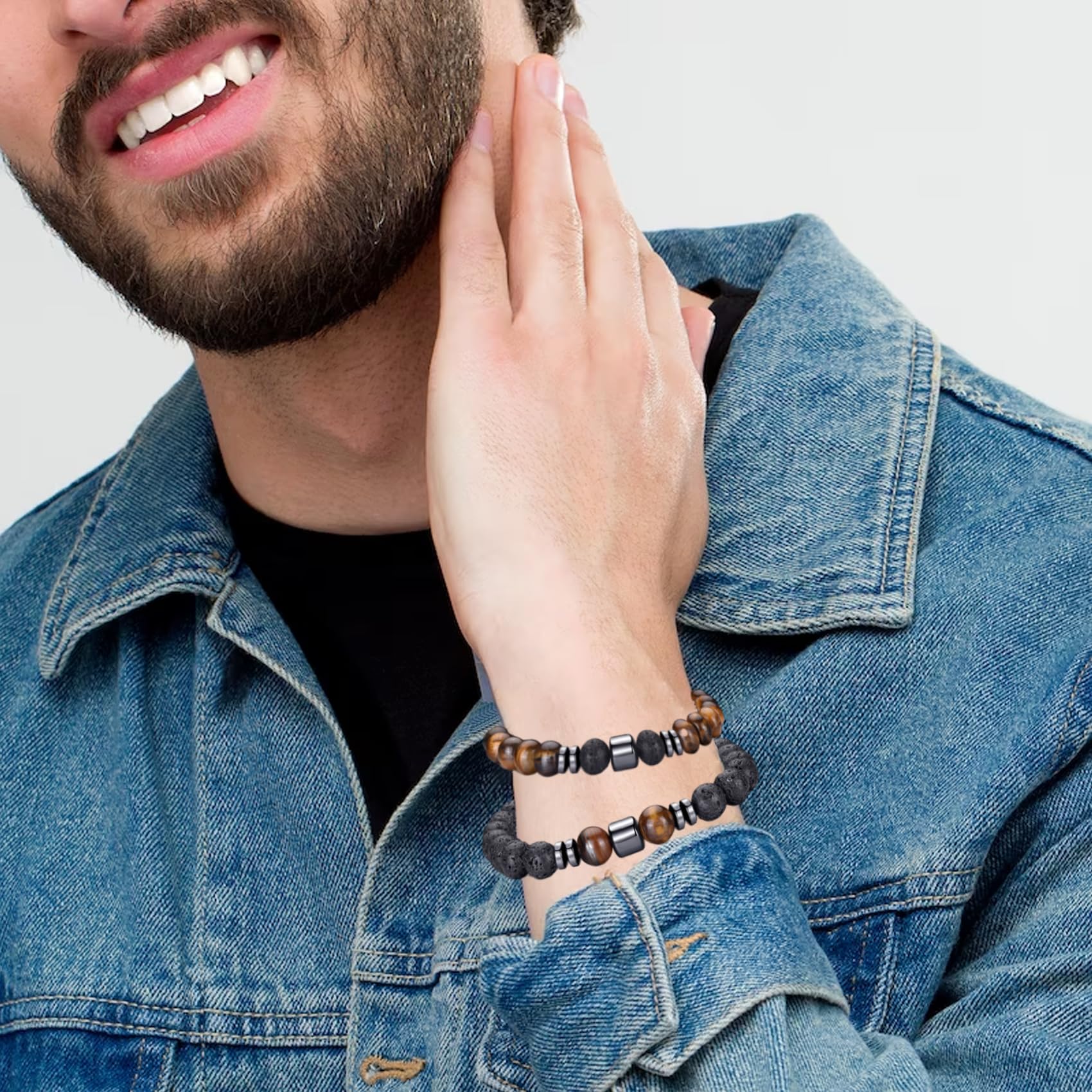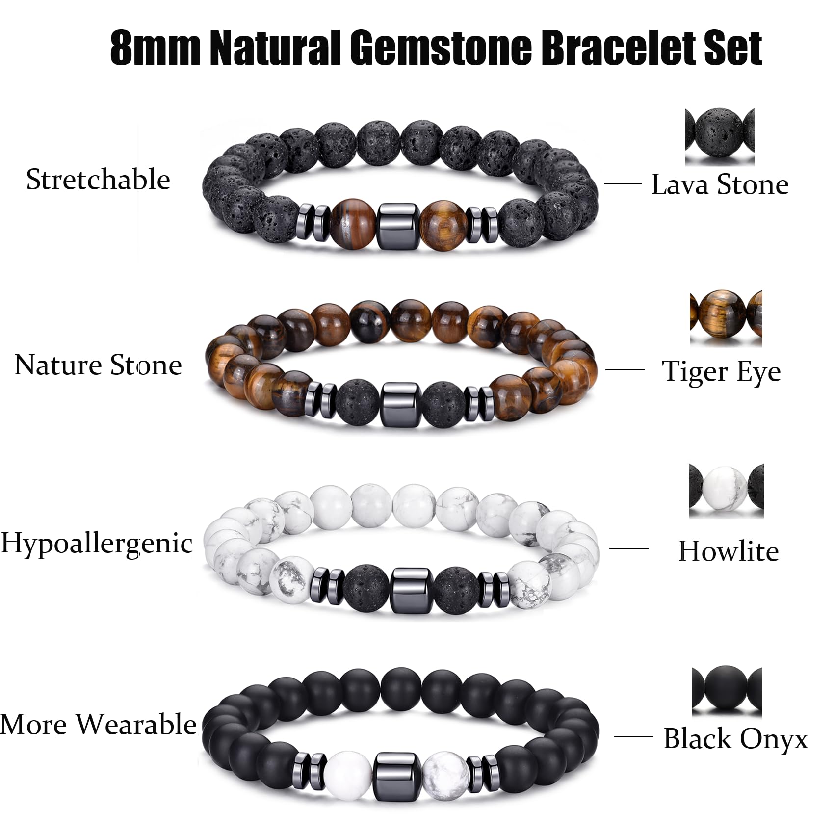 Mens Bracelets Size:The tiger eye stone and black matte agate stone bracelet can Stretch,Bead size:8mm,Adjustable Range: 7.3''-10.4''. Perfect sizes as gemstone bracelet for both men and women UNISEX. Natural tiger eye mens bracelet is a perfect bracelet jewelry accessory for any occasion to change your style and mood.