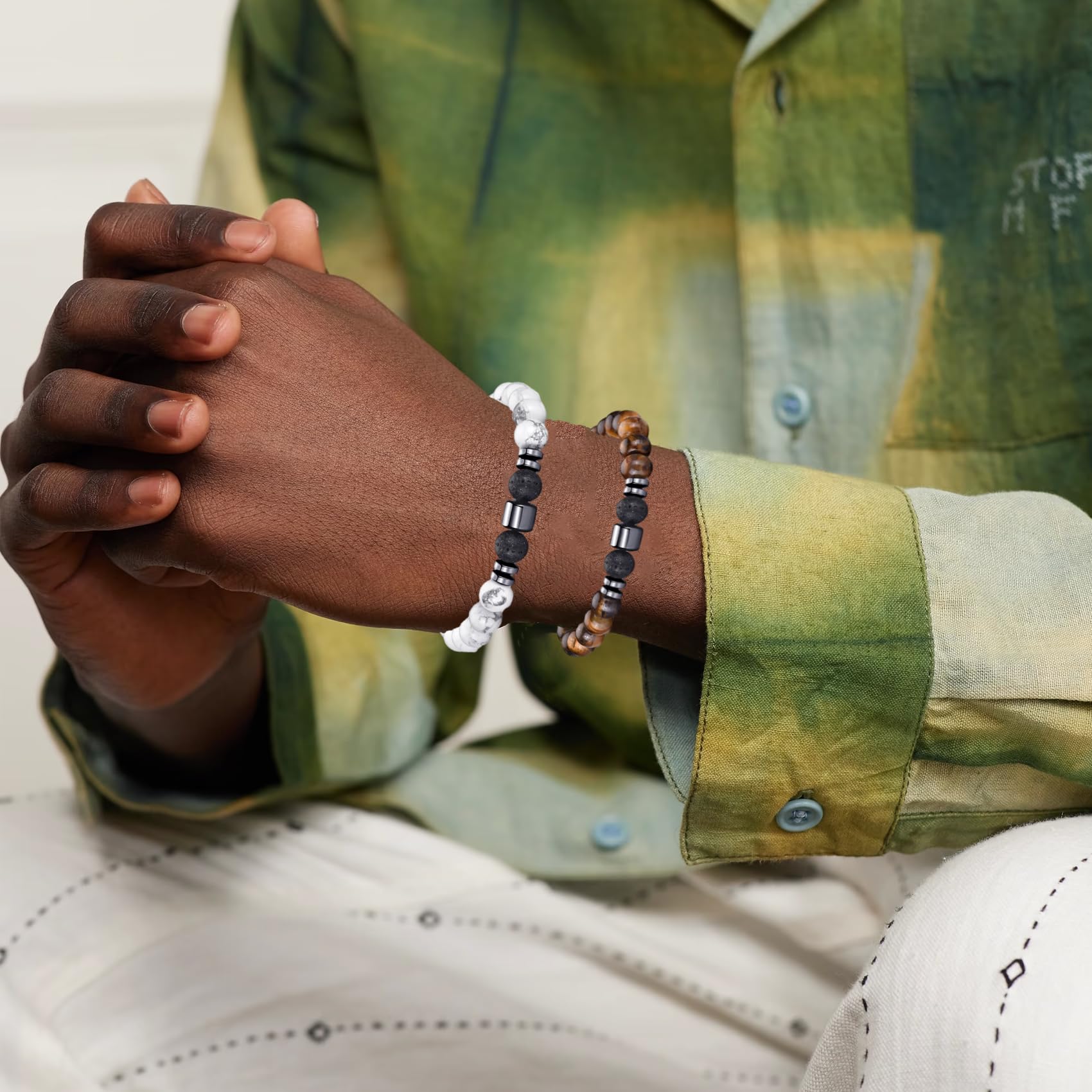 Mens Beaded Bracelet Material:Tiger eye bracelet men made of natural tiger eye stone and black matte agate,Natural stone bead possess low density and light weight. Its cool feeling in hands.You can match with your other jewelry easily to complete your look.Bracelets men will look great no matter what the occasion.