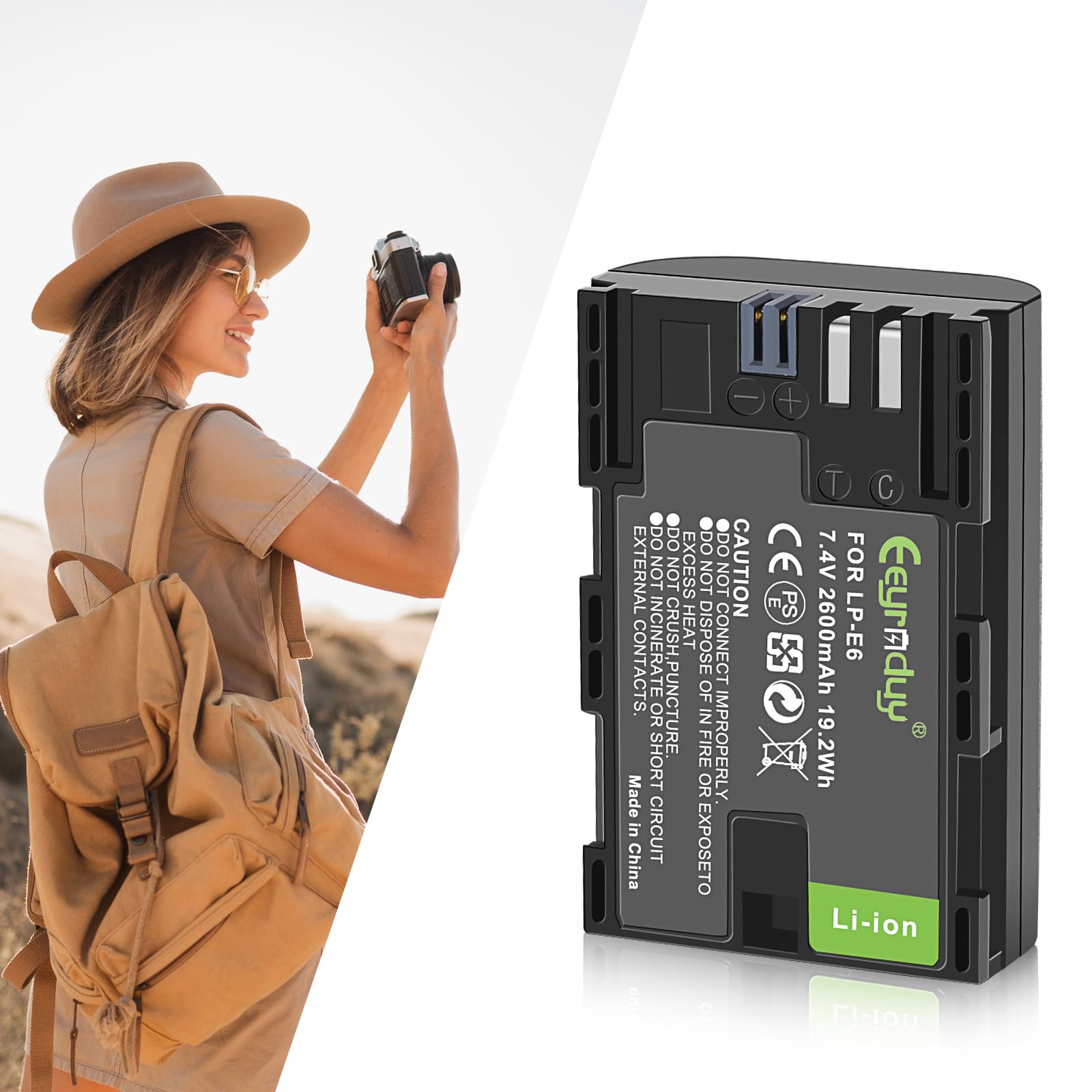 Eeyrnduy LP-E6 battery full Replacement for Canon LP-E6 LP-E6N Battery ,well Works with these popular Canon models EOS R/R5/R6/ R7/5D Mark II/ 5D Mark III / 5D Mark IV / 5DS / 5DS R / 6D / 7D Mark II / 7D / 90D/80D / 70D / 60D / 60Da and BG-E16, BG-E14, BG-E13, BG-E11, BG-E9, BG-E7, BG-E6 Grips.