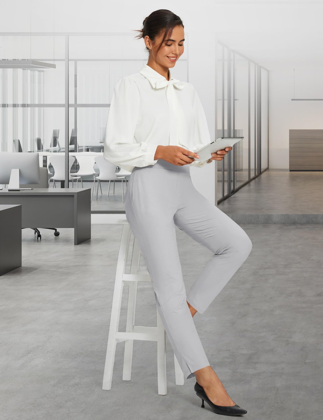 7/8 Ankle Length: With split hem design, you will appear taller and slimmer in this ankle pants. 26 inch, can be a great alternative to traditional dress pants.
