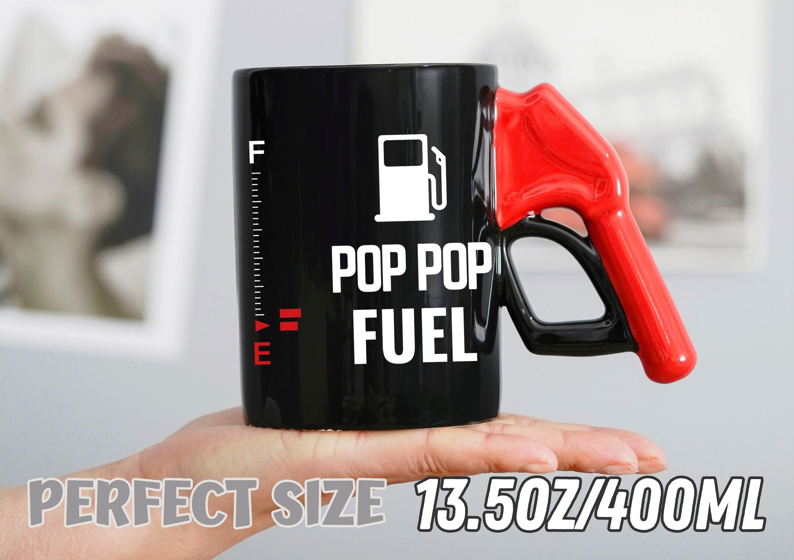 Pop Pop Gifts, Poppop Fuel Color Changing Coffee Mug with Fueling Nozzle Handle, Gifts for Grandpa, 13.5oz/400ml Funny Ceramic Mug for Christmas, Father's Day