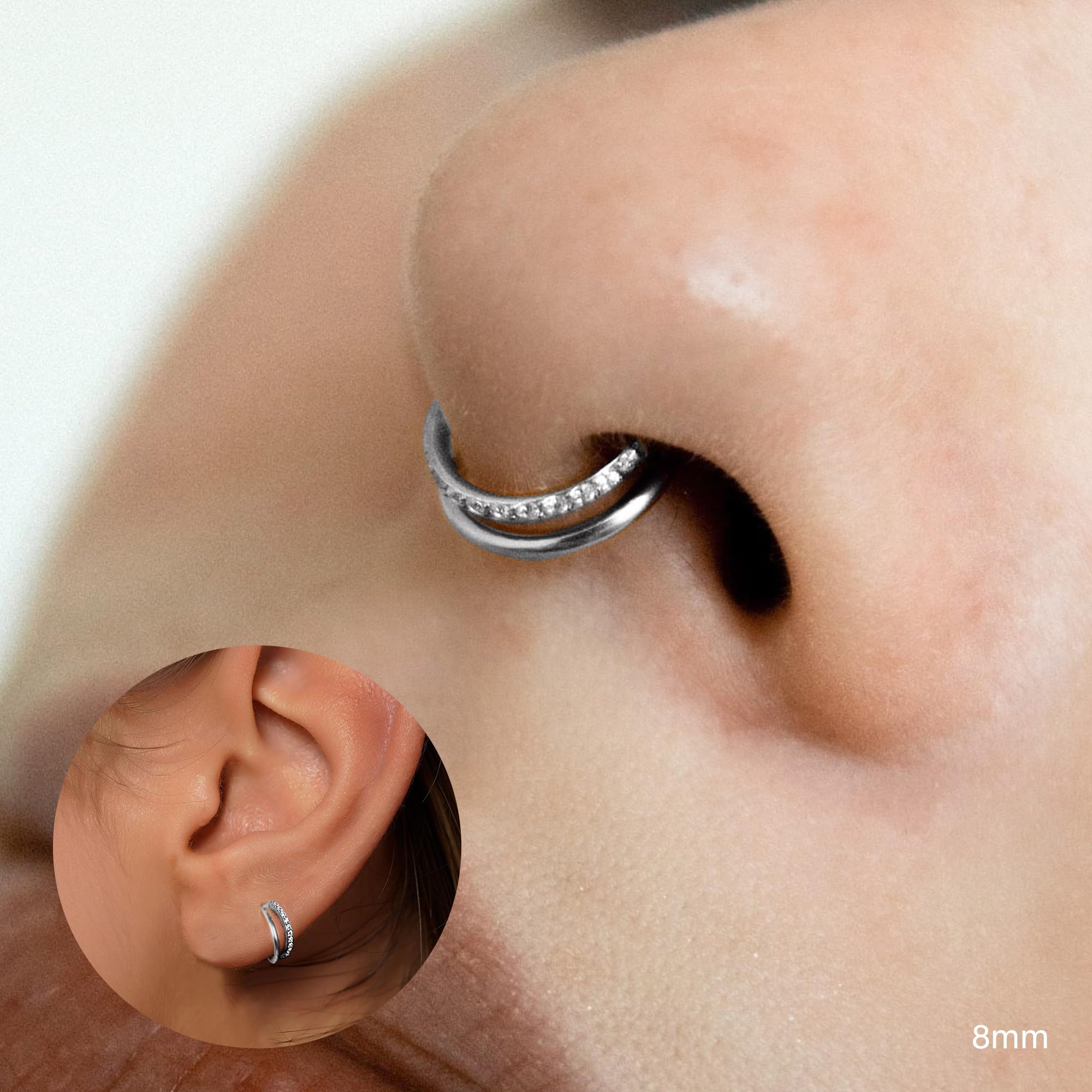 Double Zircon Daith Septum Rings: Unique and exquisite design, both men and women can wear