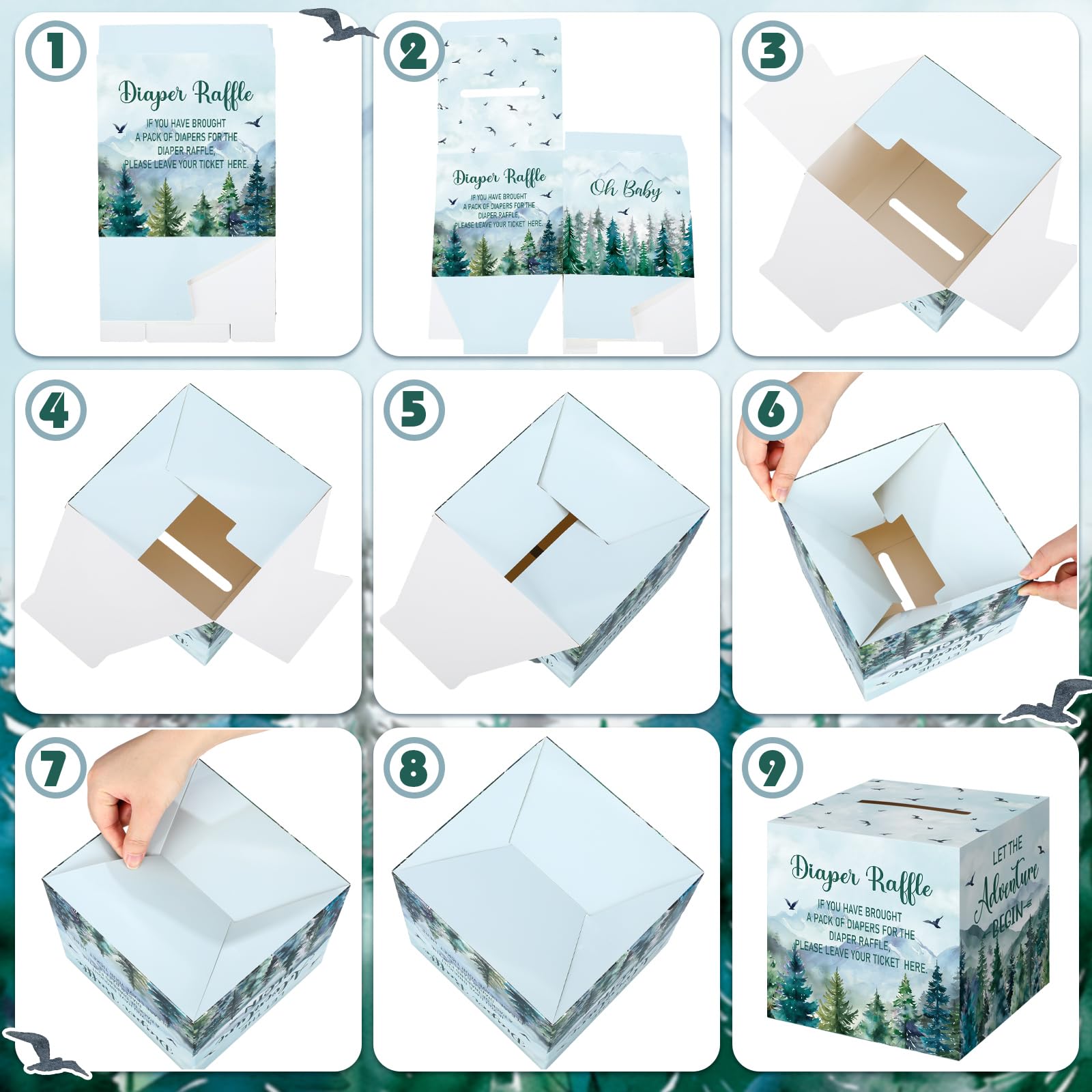 Easy to Install: you can easily install the raffle ticket box along the creases, or fold it in the correct way as shown in the picture, simple and convenient; After that, you can put the diaper raffle cards into the box through the slot on the top