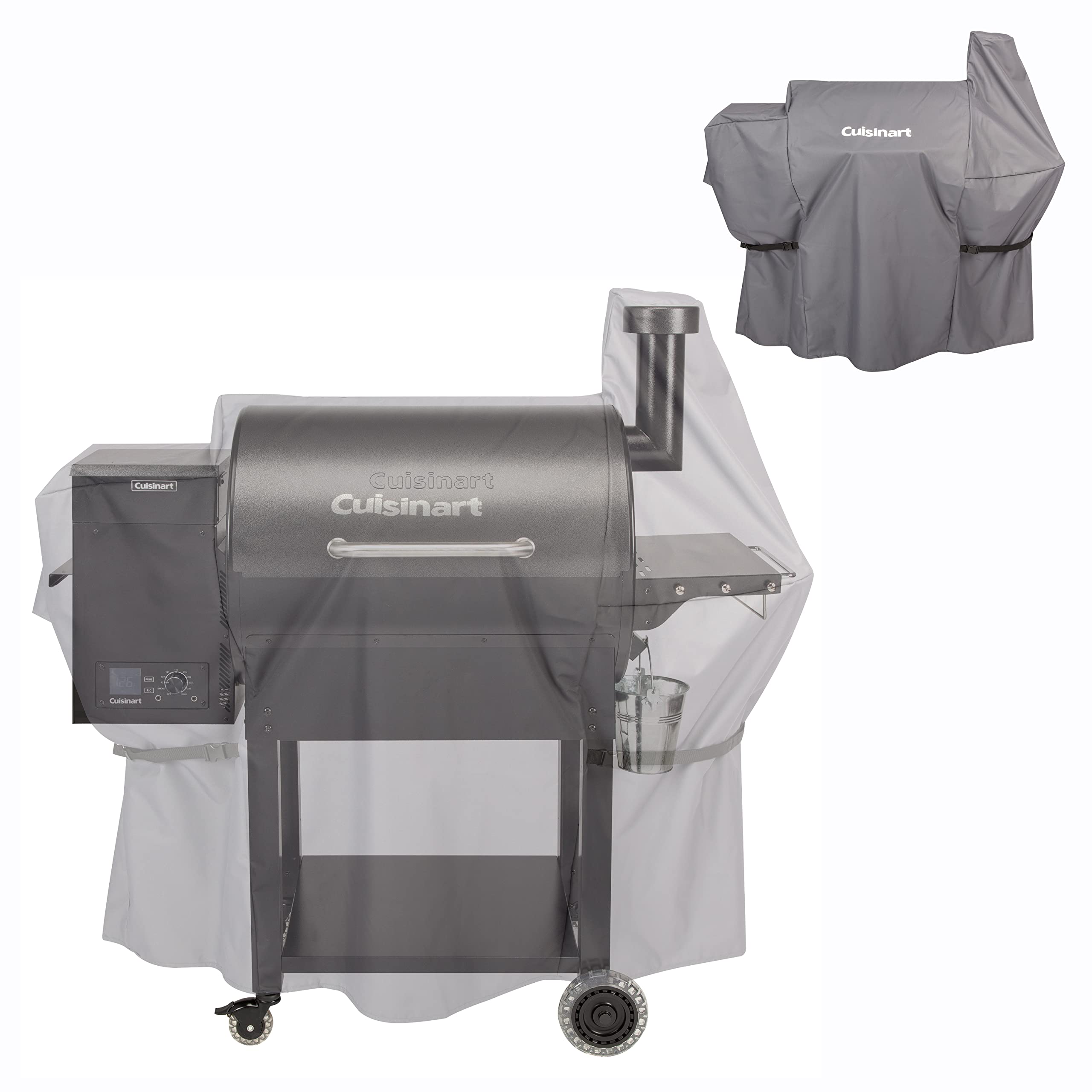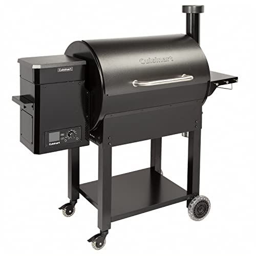 Make some mouthwatering meals with the Cuisinart Deluxe Wood Pellet Grill and Smoker! This grill has 700 sq.in., 484 sq.in. main rack + 216 sq.in, of cooking space and an integrated sear zone, allowing for either direct or indirect grilling, offering 8-in-1 versatility cooking; Smoke, BBQ, Grill, Roast, Sear, Braise, Bake, and Char-Grill. With a wide temperature range from 180°F to 500°F, the digital control automatically adds pellets as needed to regulate the temperature. The 21 lb. hopper capacity allows this pellet grill to smoke for hours without refilling. All-Terrain Wheels and Lift Handle makes it easy to move when not in use. Also features 13 inches of prep space with a bottle opener, tool hooks, and a paper towel holder. Enjoy the set it and forget it style cooking with two included meat probes to help you keep an eye on the food temperature. This smoker is great for backyard dinners, camping, tailgating, and more!