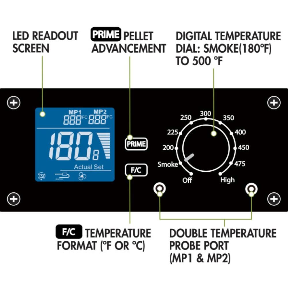 ADVANCED WOOD FIRE TECHNOLOGY: With a wide temperature range from 180°F to 500°F, the digital control automatically adds pellets as needed to regulate the temperature