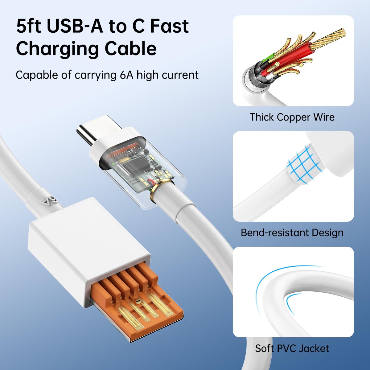 5ft Long Super Charging Cord: This cable is equipped with a Xiaomi fast charging protocol recognition chip that accurately recognizes all Xiaomi phone models.The USB-A port features a 5-pin design that triggers Xiaomi's fast charging and carries a high current of 6A. At the same time this cable can also be used for oneplus, OPPO and realme phone fast charging.