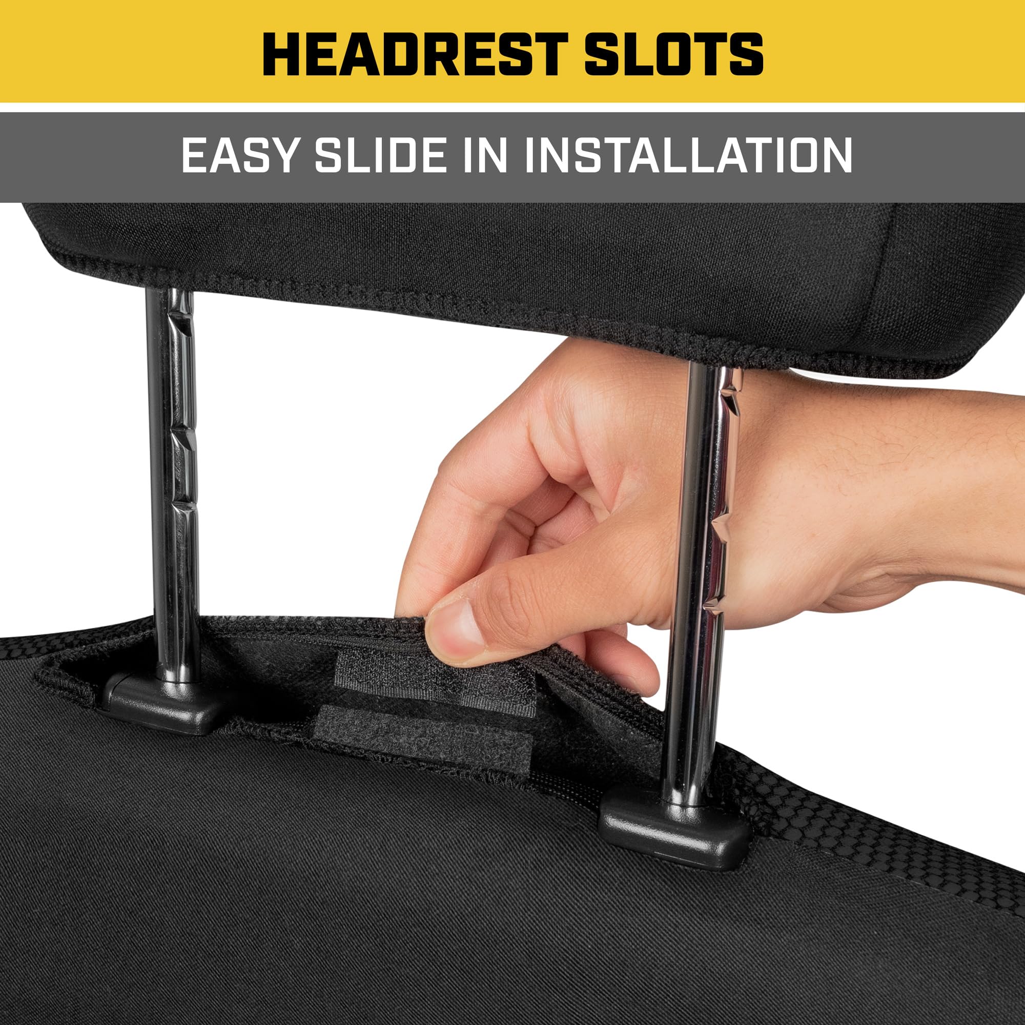 DURABLE PROTECTION: From job sites to daily drives, CAT Car Seat Covers provide reliable, long-lasting defense against wear and tear. Designed to enhance your vehicle's interior, these durable covers protect against spills, sweat, dirt, and normal wear and tear, while offering a sleek, refreshed look by covering up old, worn-out seats.