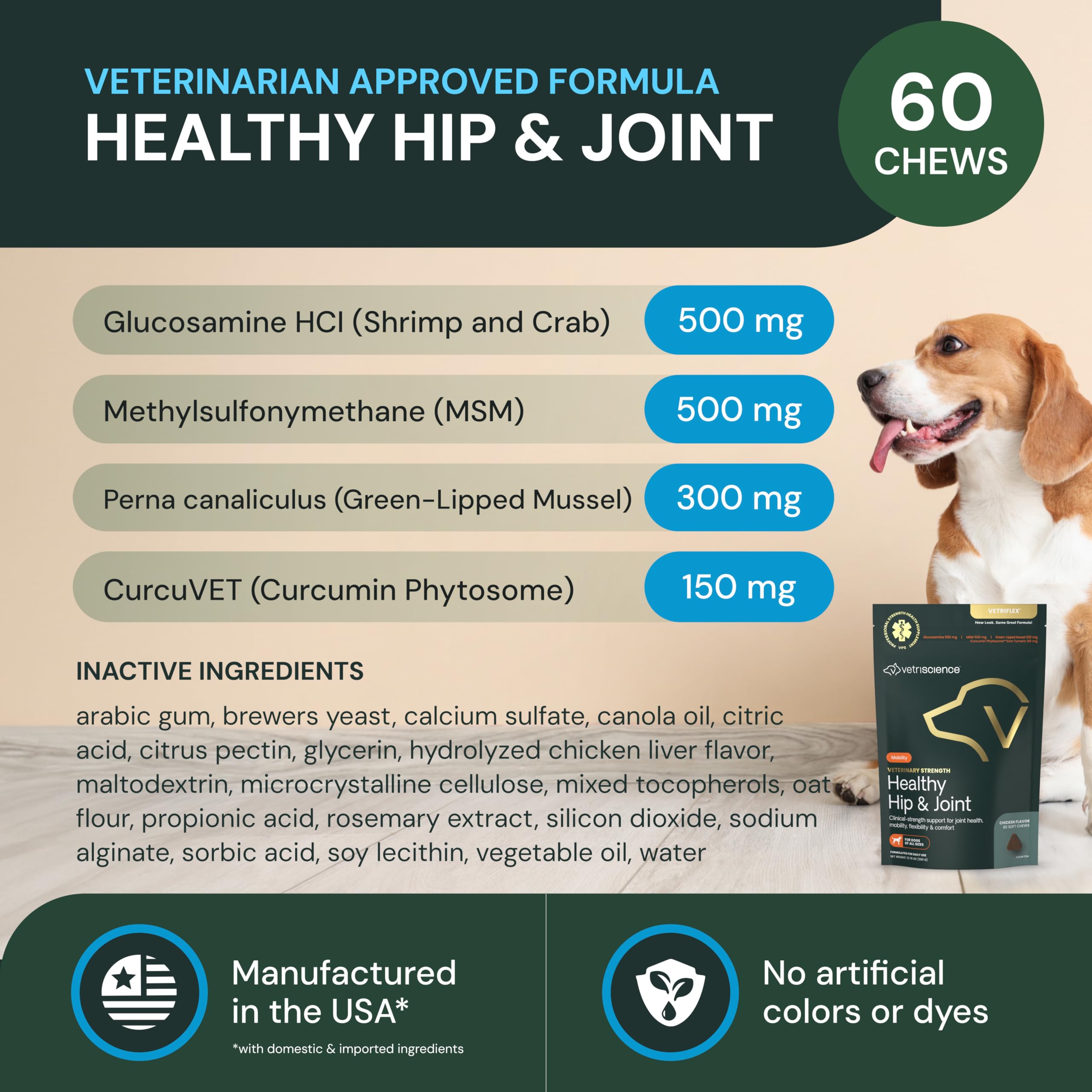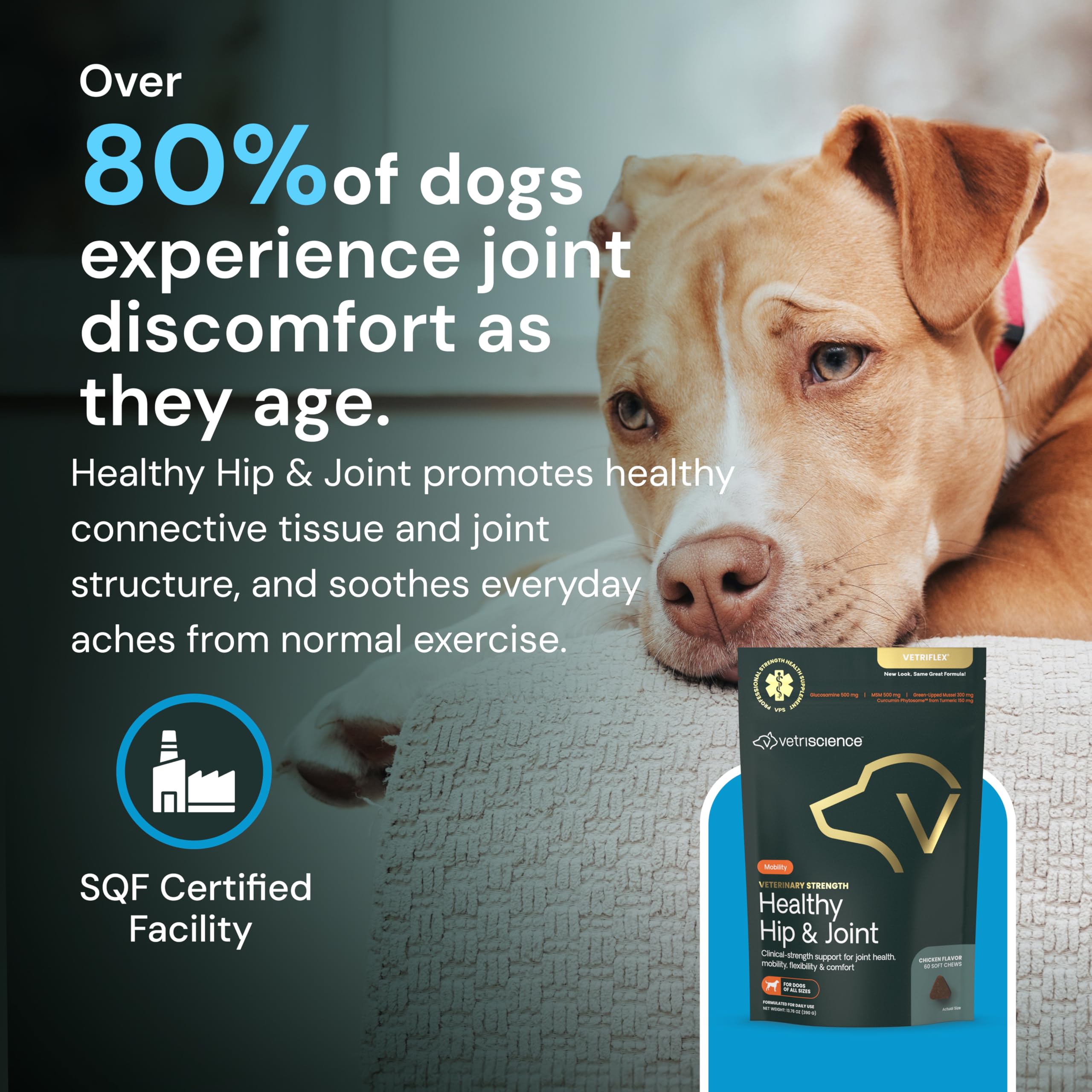 Joint Supplement for Dogs: VetriScience Veterinary Strength Healthy Hip & Joint Chews are mobility treats with a clinically proven advanced joint health formula to support joint comfort*