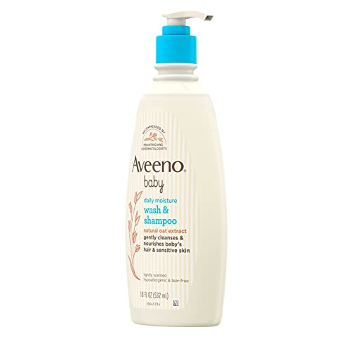 Gently cleanse your baby's skin and hair with Aveeno Baby Daily Moisture 2-in-1 Bath Wash & Shampoo, which features a nourishing formula that gently cleanses without drying. For babies with sensitive skin, this tear-free formula is safe for use on baby's delicate skin and hair. From a pediatrician-recommended brand, the baby body wash and shampoo formula contains natural oat extract, which is known to soothe and gently nourish delicate skin. The rich lathering formula rinses clean, leaving a light, fresh fragrance. This hypoallergenic baby wash and shampoo is free from soap, parabens, sulfates, phenoxyethanol and phthalates and can be used every day to help keep your baby's skin and hair soft and smooth.