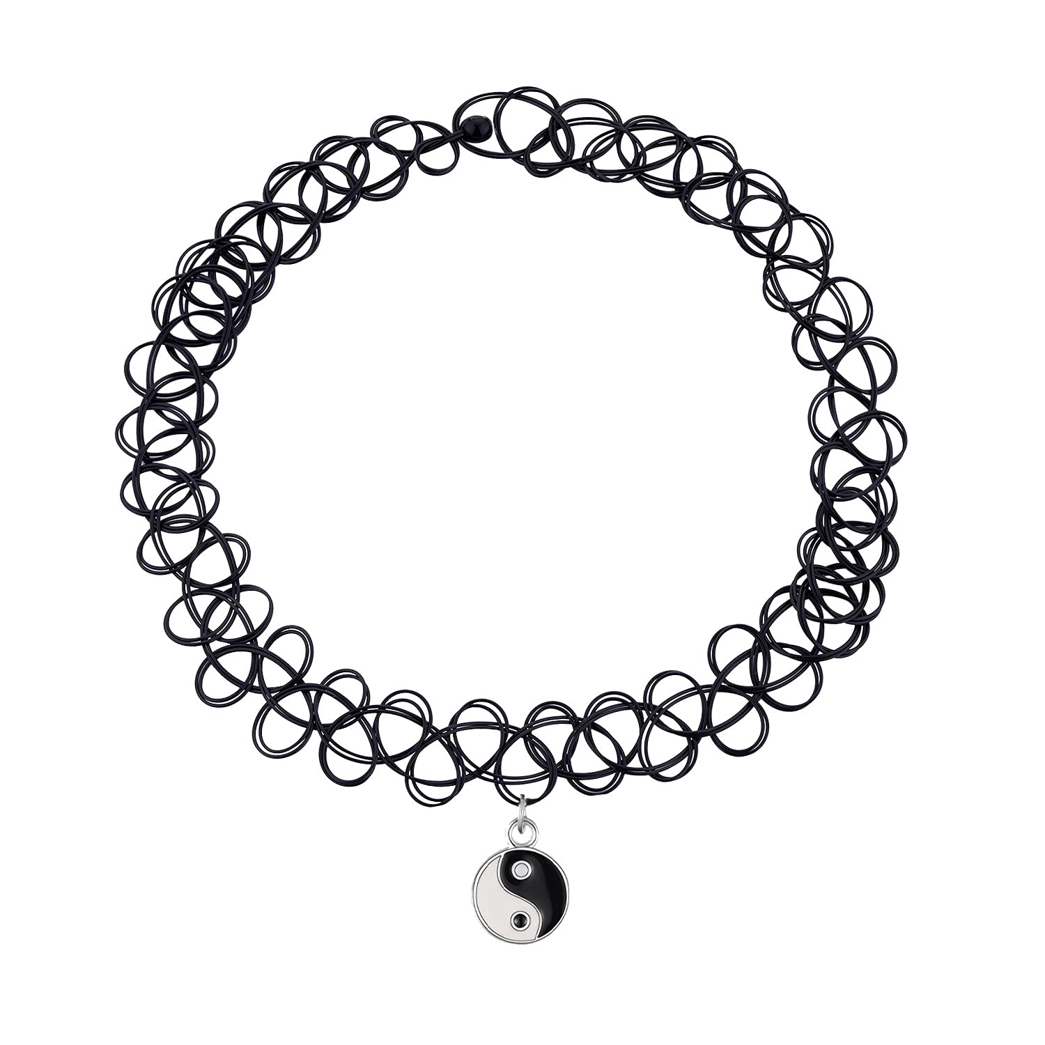 STRETCHY VINTAGE CHOKER NECKLACE: Inspired by 90s Henna Tattoo Designs, This Elastic Necklace Fits Comfortably and Complements a Variety of Styles - Perfect for Pairing with Classic Black Dress, Gothic Looks, 2000s-inspired Outfits, Rock Concerts, Beachwear, Halloween Costumes, or Holiday Parties