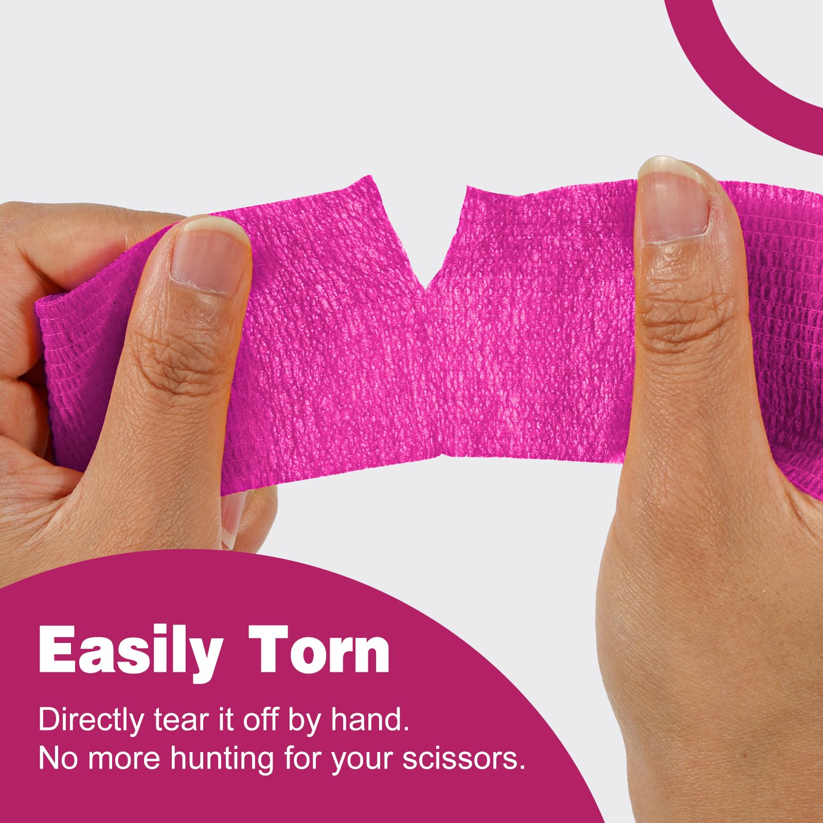 Self Adhesive Bandage: Package includes 16 rolls of pink self adhesive bandage wrap. Each roll measures 2 inch wide and 5 yards long after stretching. It easily adheres to itself but will not stick to other surfaces such as skin or hair, making it easy to pull off and change bandages