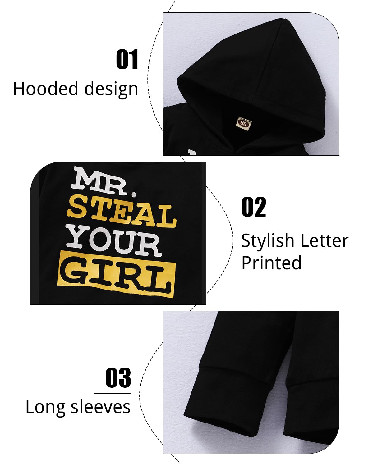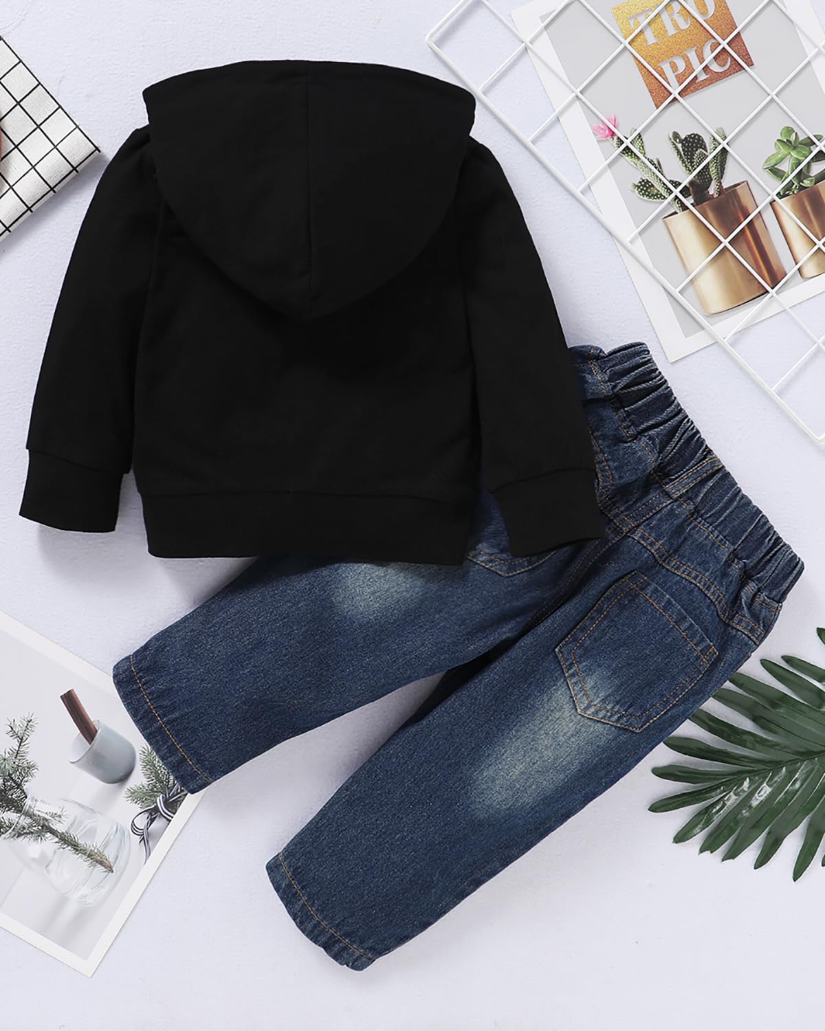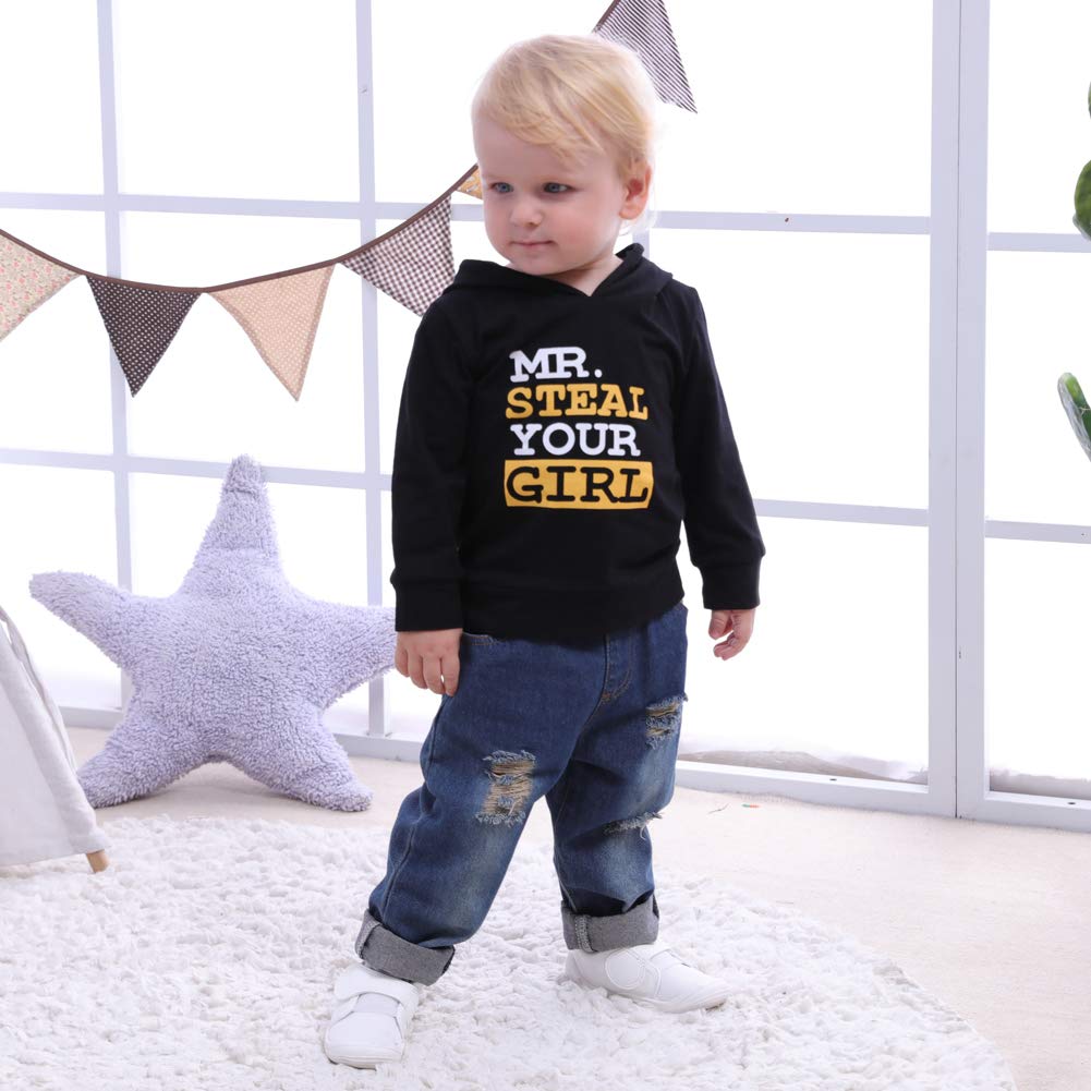 Package: 1* Letter printed hooded top + 1* Baby boy jeans. Baby boy outfits will provide the best comfort experience for babies playing or daily wear.