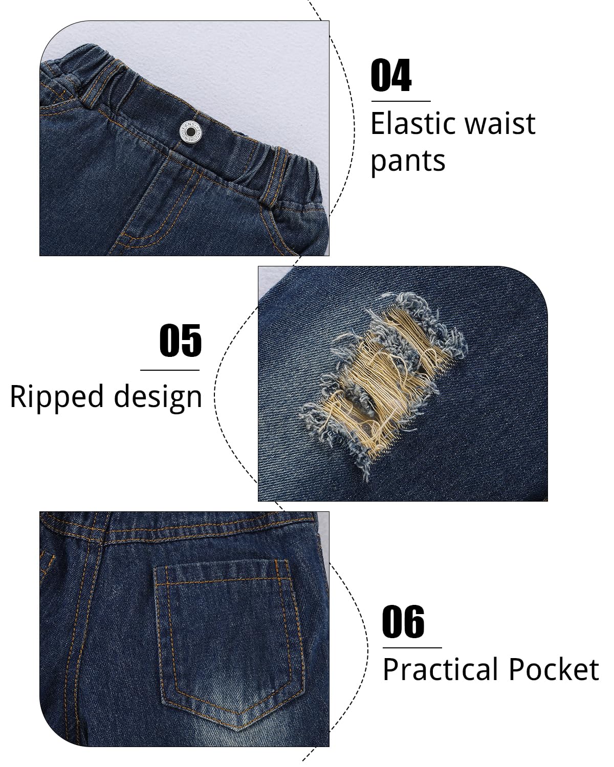 Fashion Style: Toddler clothes for boys are designed with letter printing, with comfortable ripped jeans pants, make your little kids look more fashionable and cool, are also a good gift for little boys.